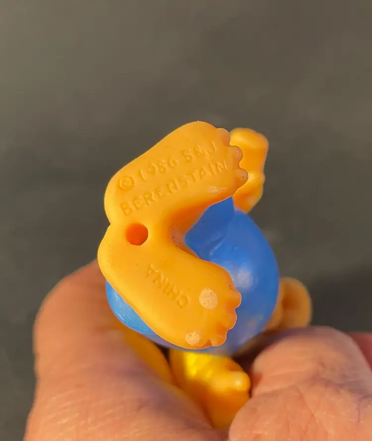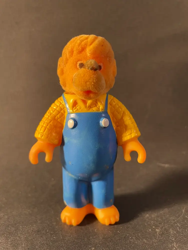 Papa Berenstain Bear from 1986. He is flocked, and in pretty good condition, with a little fading on the face. 4” tall