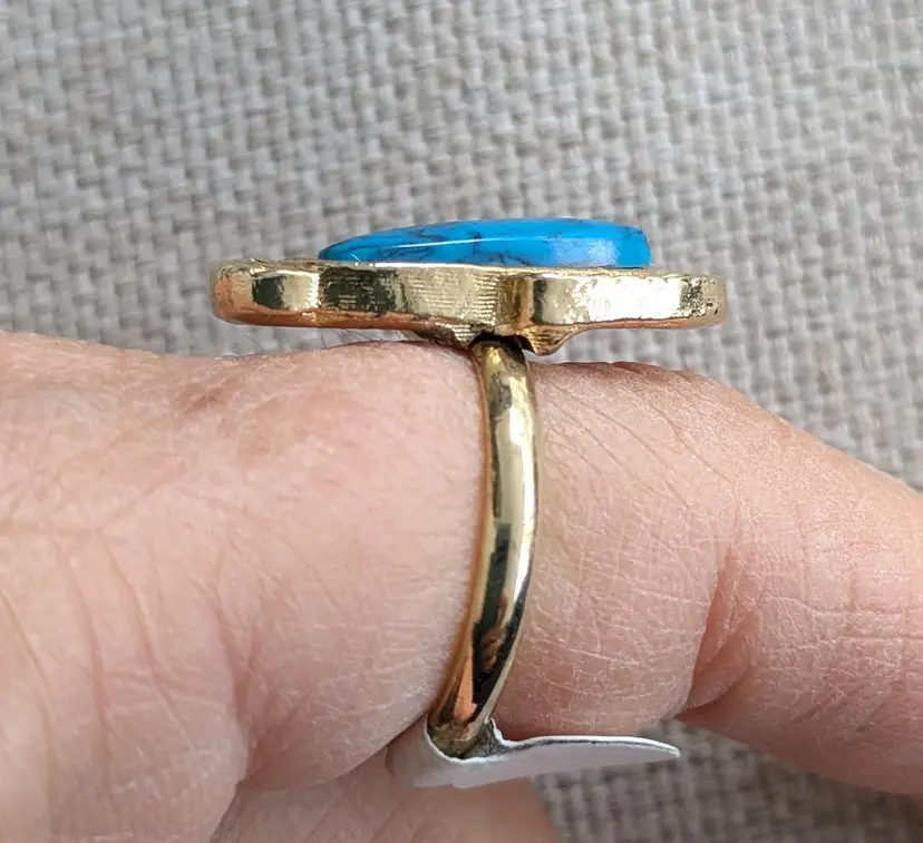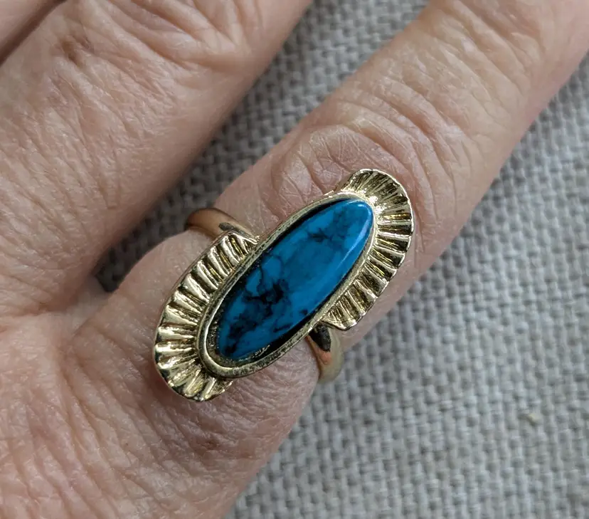 The face of the ring is 1" long. Unmarked. Adjustable currently a size 7.