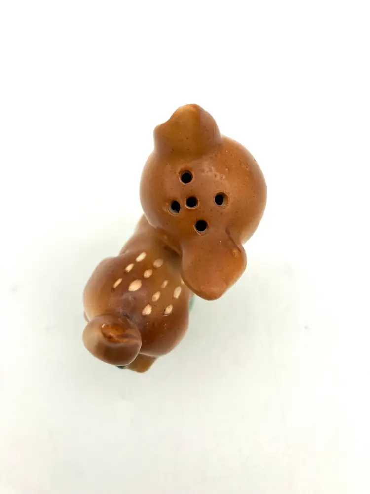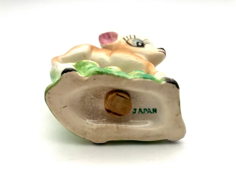 Great vintage condition. Some crazing on underside. Smooth popped glaze bubble on middle flower. Measures 2.375” x 1.125” x 3.375”.