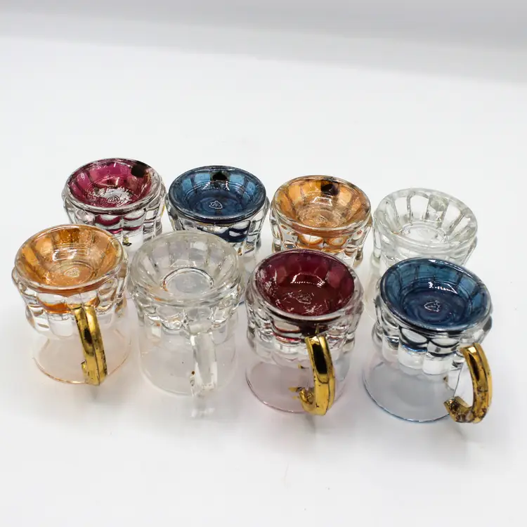 Vintage Federal Glass Mini Beer Mugs Shot Glasses – Set of 8, Color Base & Gold Handle, 1 oz Barware