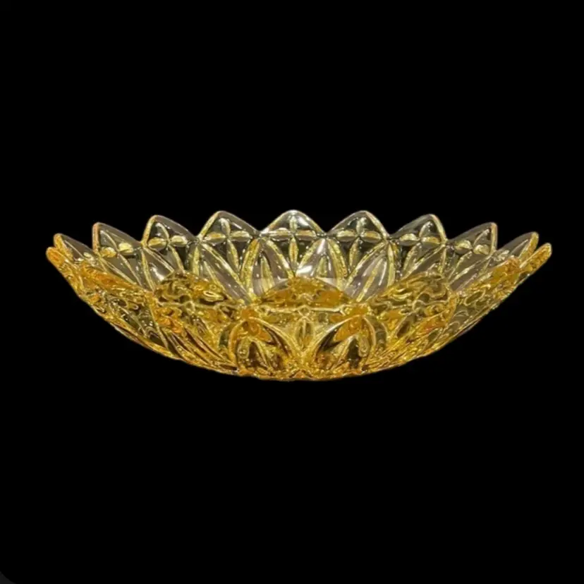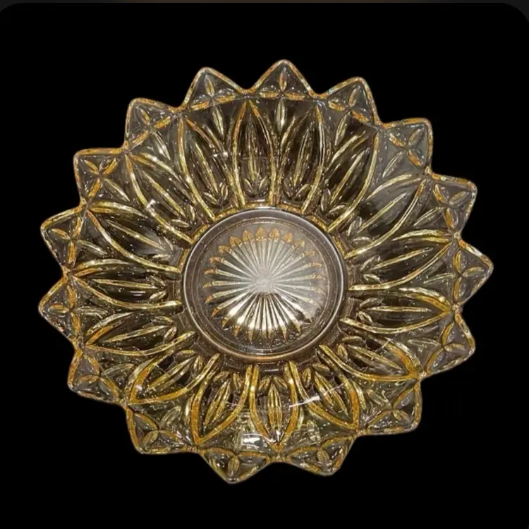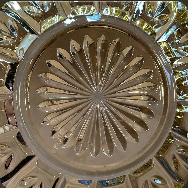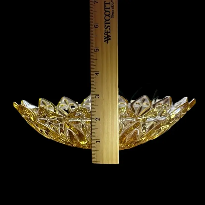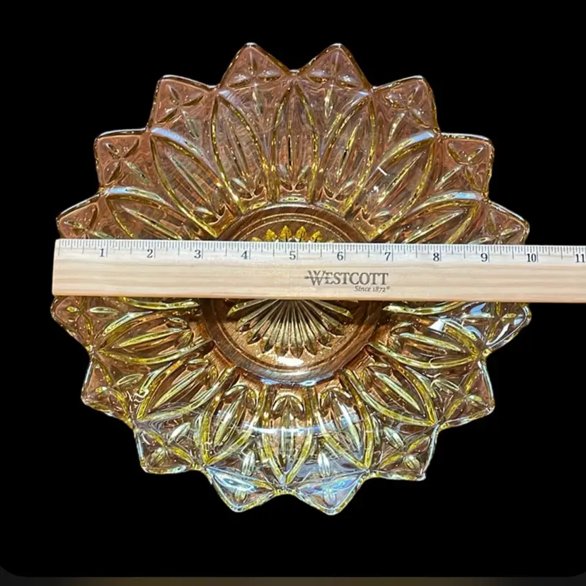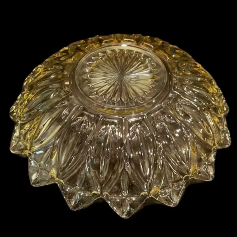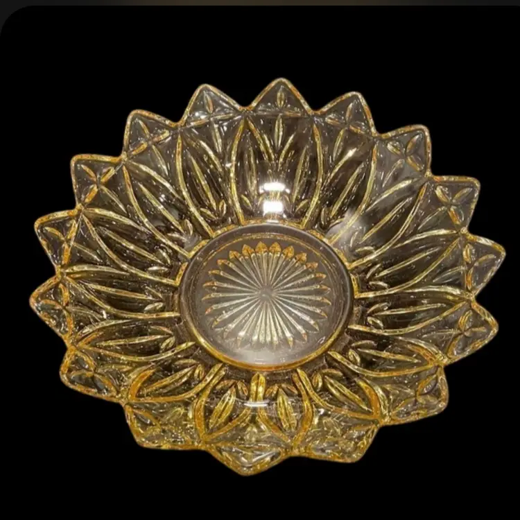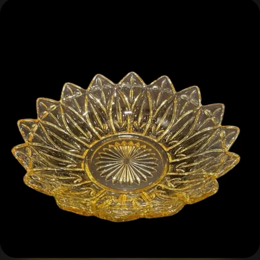 This is a vintage Federal Glass Co. yellow glass sunflower starburst petal patterned bowl. Measures approximately 2.5" deep x 10" in diameter. No chips or cracks. #HC1
