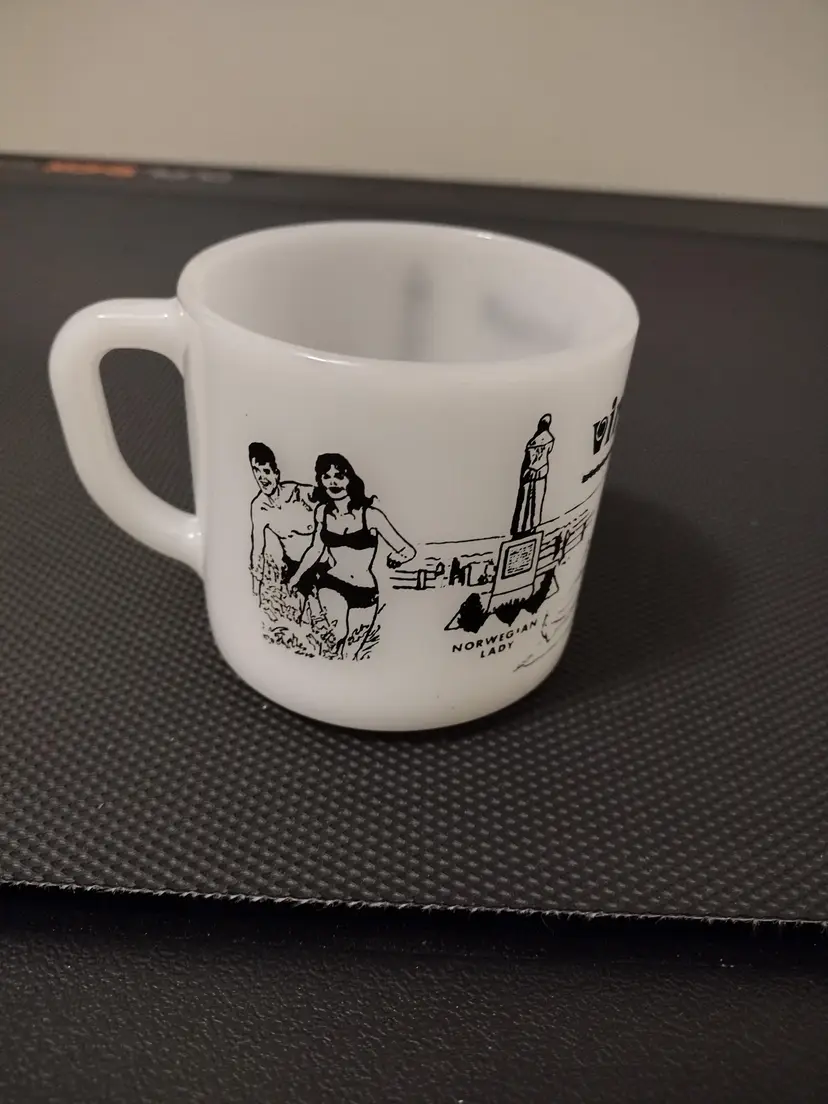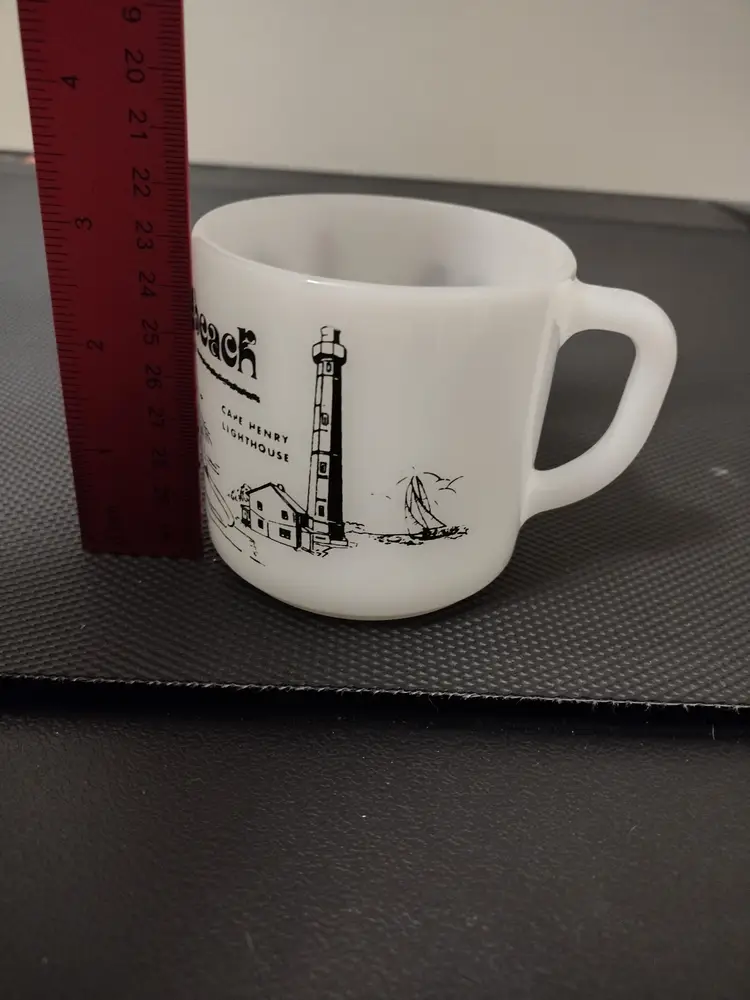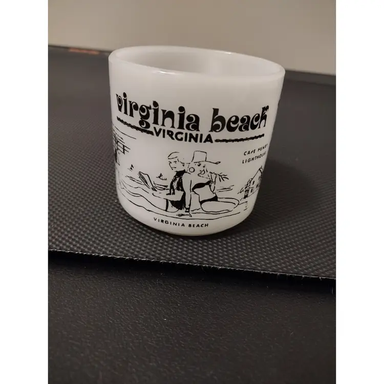 Vintage Federal Milk Glass White Virginia Beach Souvenir Coffee Mug MCM