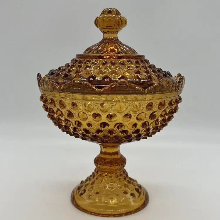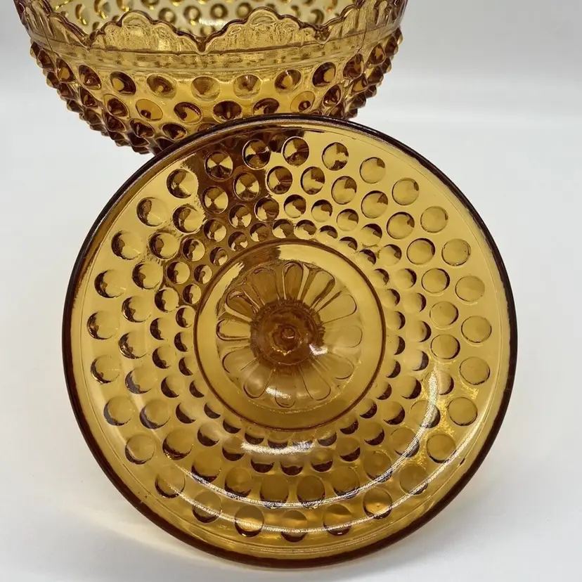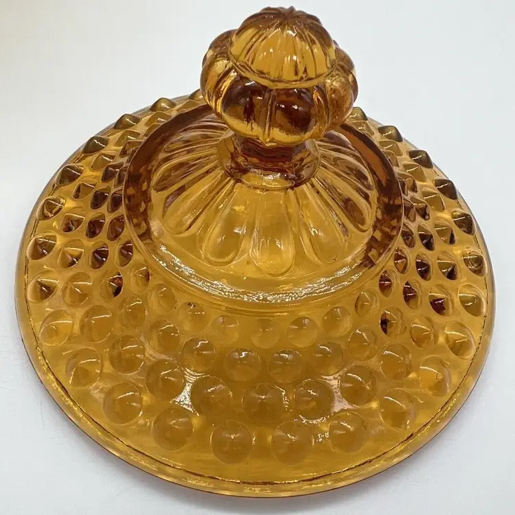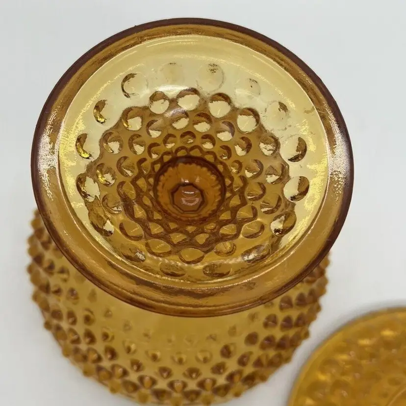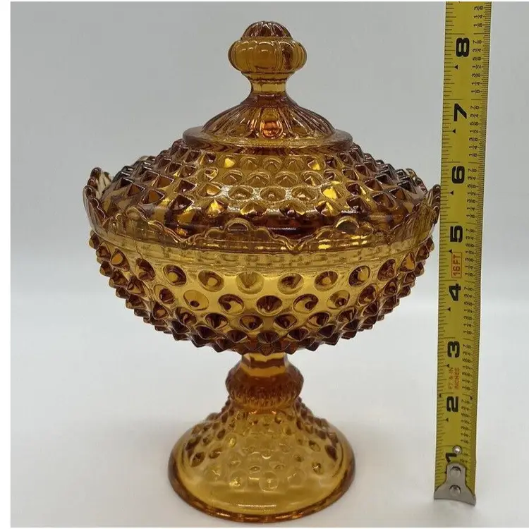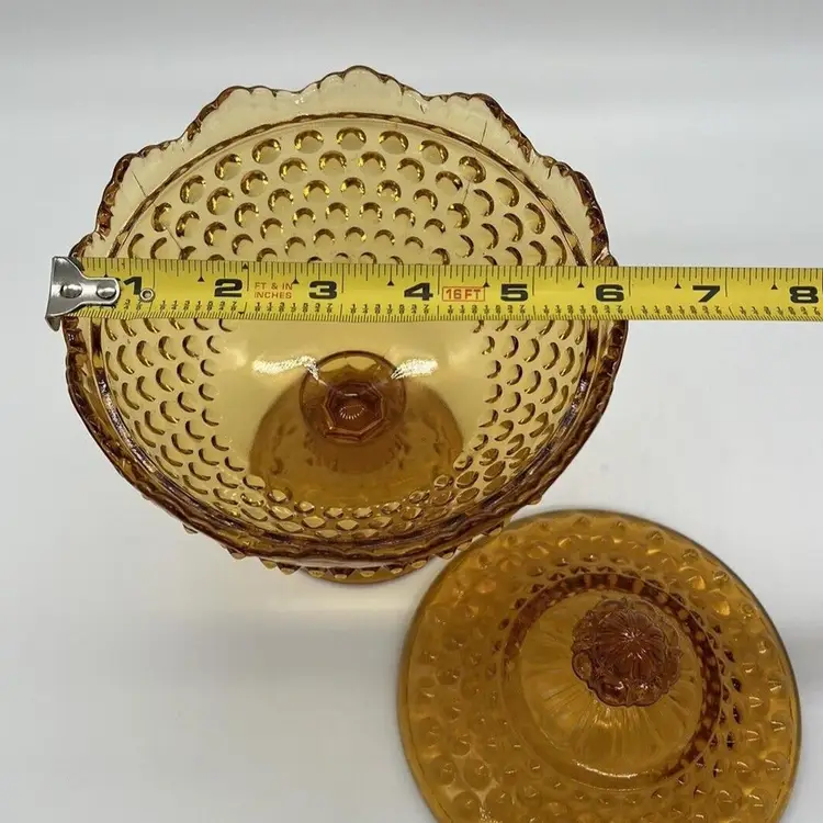 Great condition. This piece measures about 8" tall and 6" wide. The lid and the inside rim each have a flea bite as pictured. No cracks or significant damage.