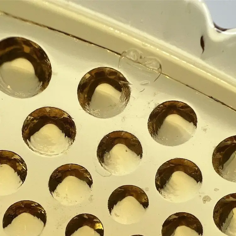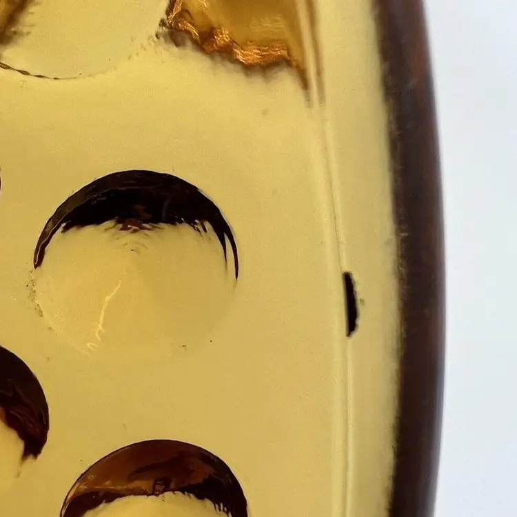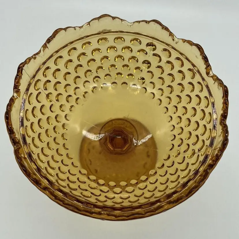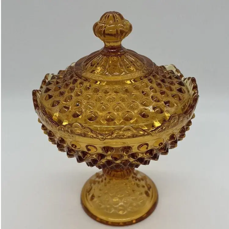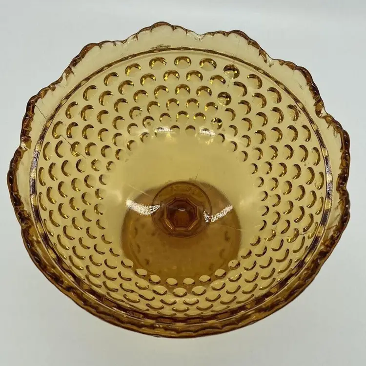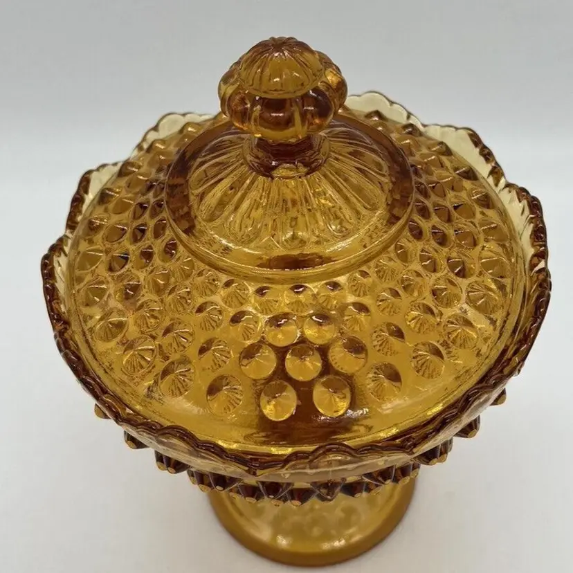 Great condition. This piece measures about 8" tall and 6" wide. The lid and the inside rim each have a flea bite as pictured. No cracks or significant damage.