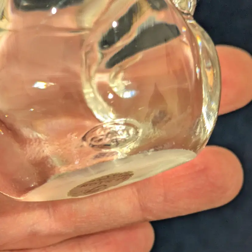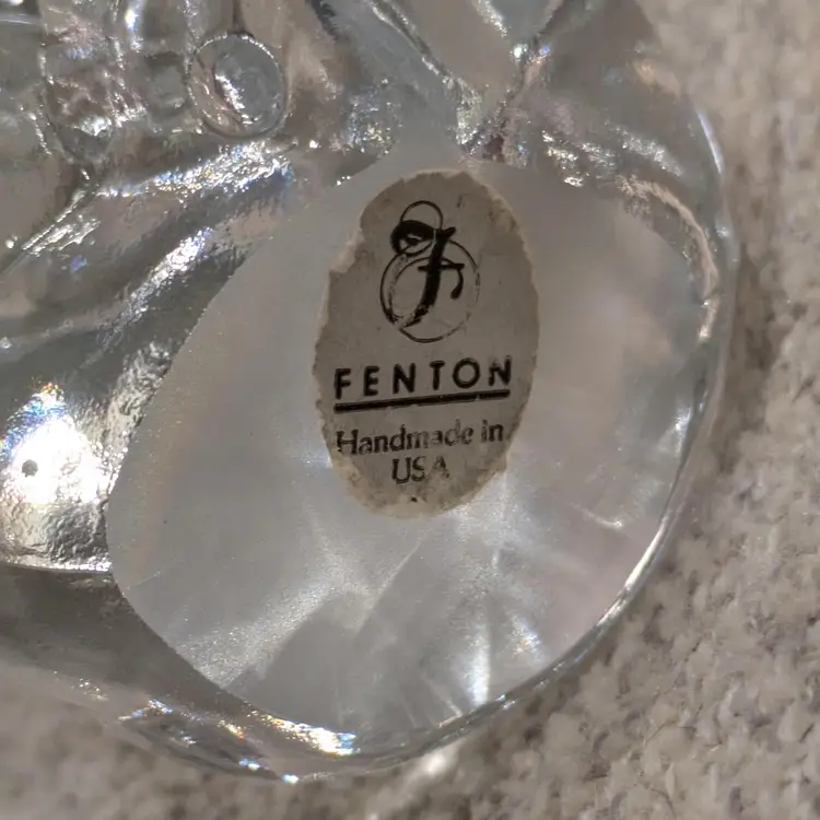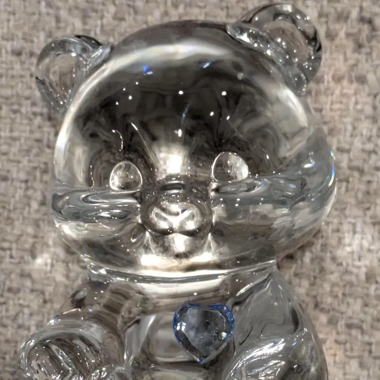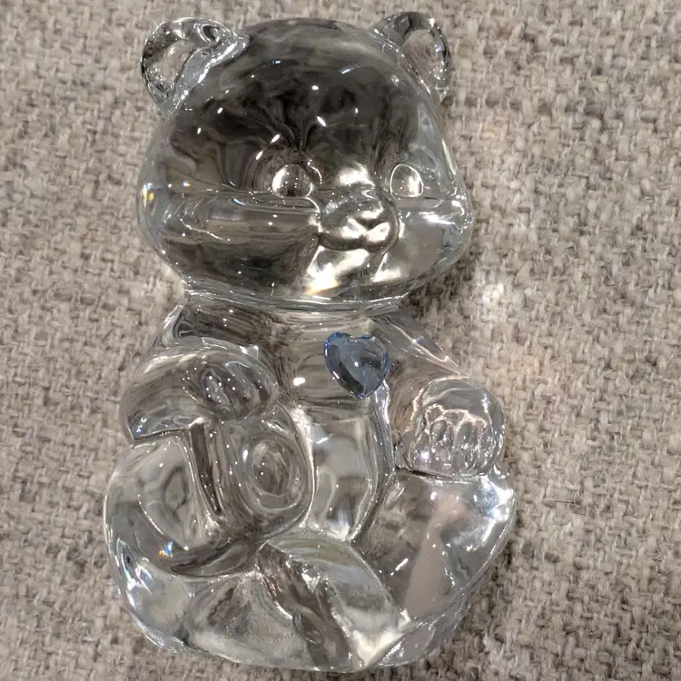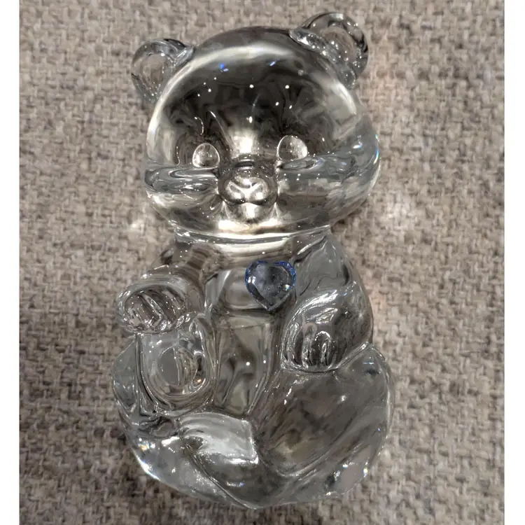Adorable crystal clear Vintage Fenton Bear with aquamarine heart for March birthstone, this guy is super cute, in excellent vintage condition no chips or cracks, Fenton oval logo and original foil sticker are both present on the piece, nice size at 3.3/4" tall. Sweet!