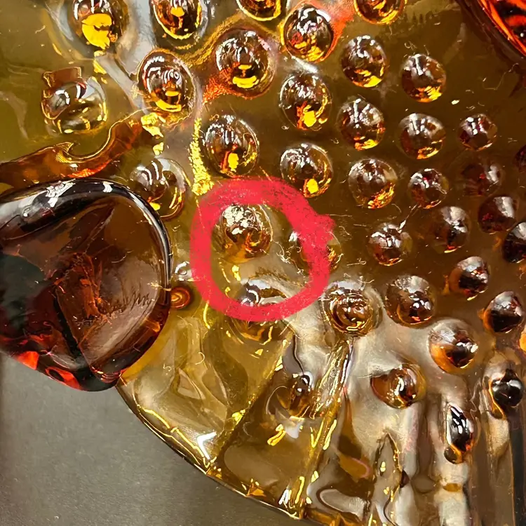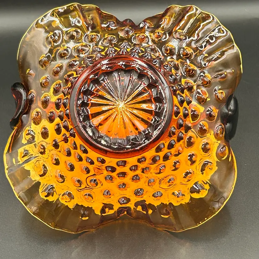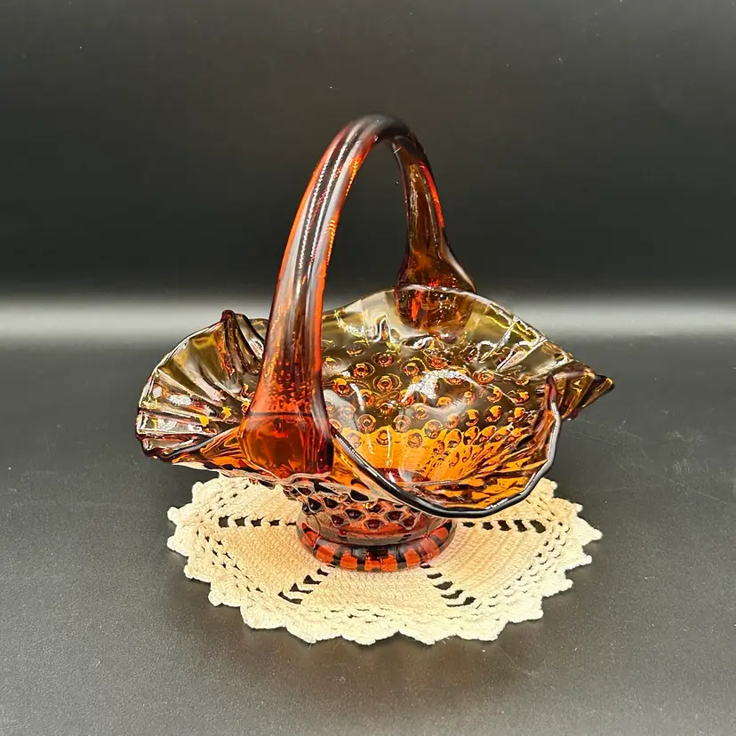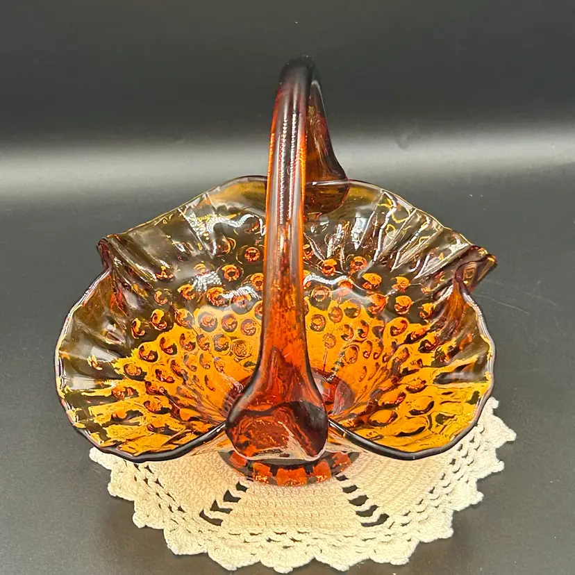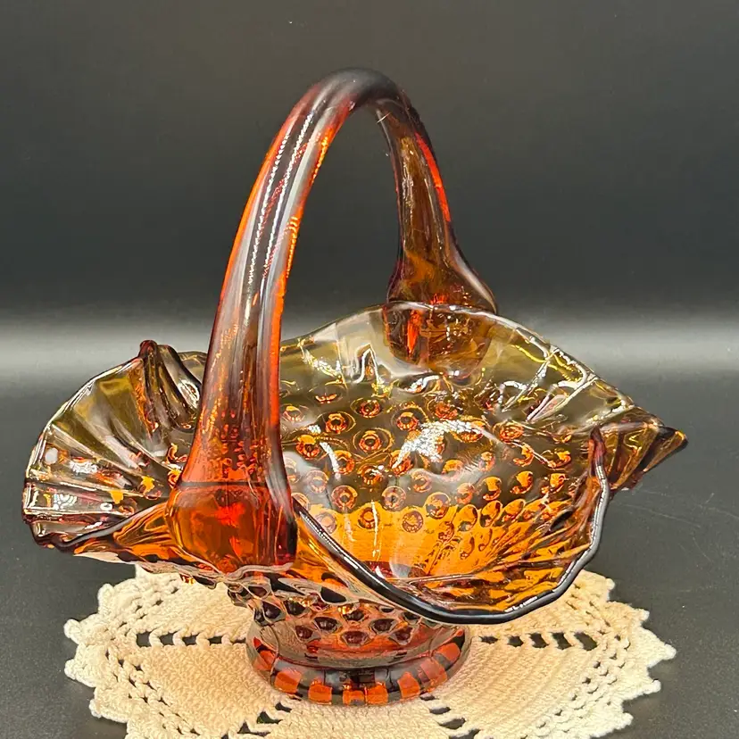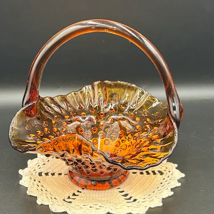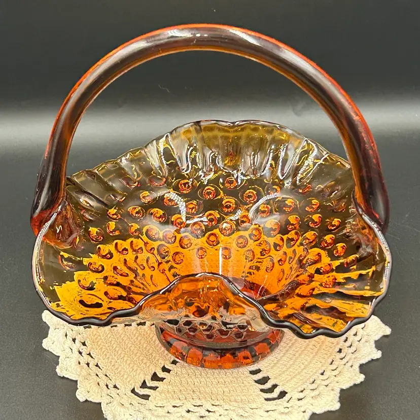 6” tall, 6.25” diameter basket opening, 2.25” diameter base. Excellent condition. No chips or cracks. One rough hobnail, circled in last photo.