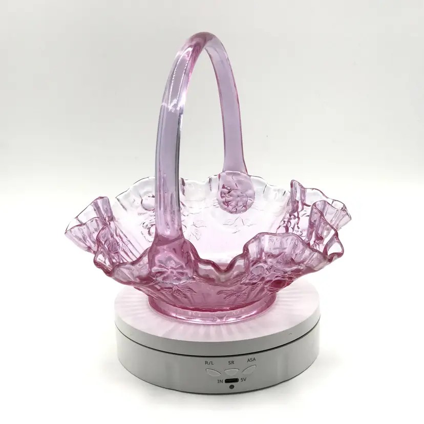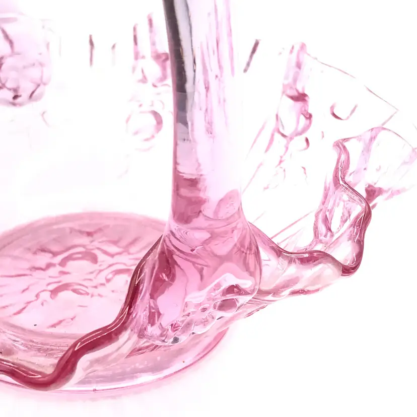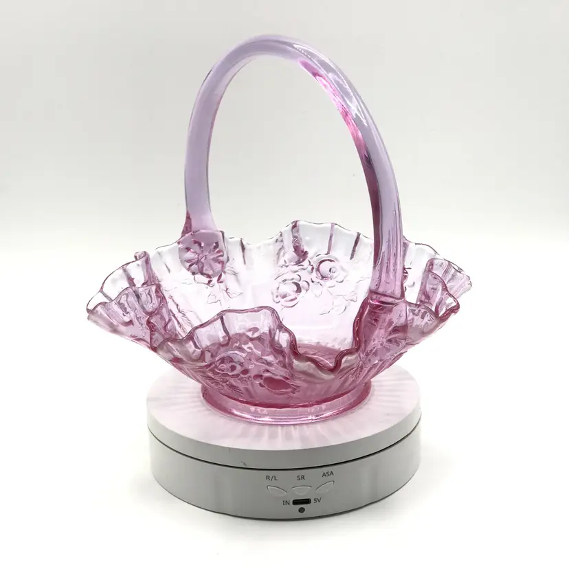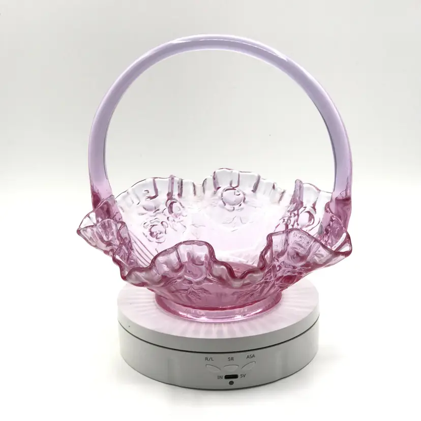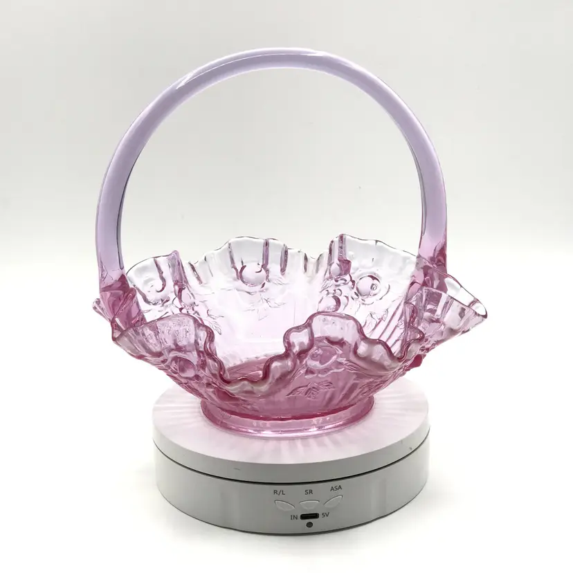 The Vintage Fenton Art Glass Cabbage Rose Basket from 1967 is a beautiful collector's item. This elegant piece features a delicate cabbage rose pattern and a ruffled edge, all in a lovely dusty rose pink color. Handcrafted with attention to detail, this basket showcases the exquisite craftsmanship Fenton is known for, making it a charming addition to any vintage glass collection.