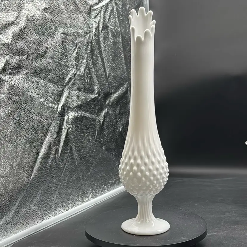 Vintage Fenton Art Glass White Milk Glass Hobnail 15 inch Swung Vase
