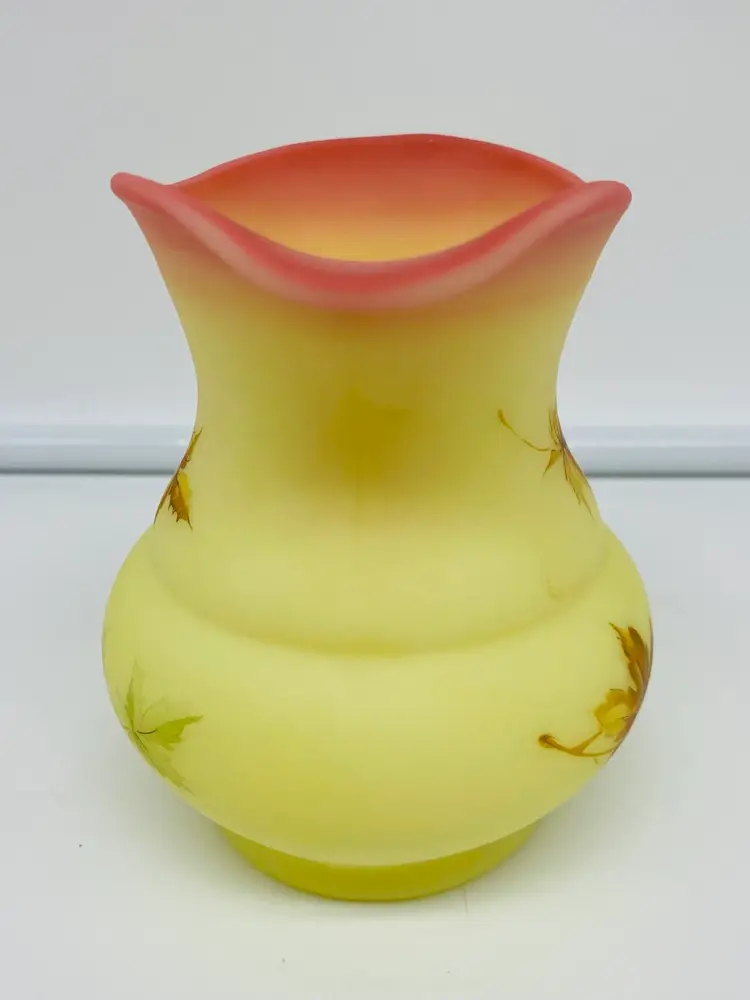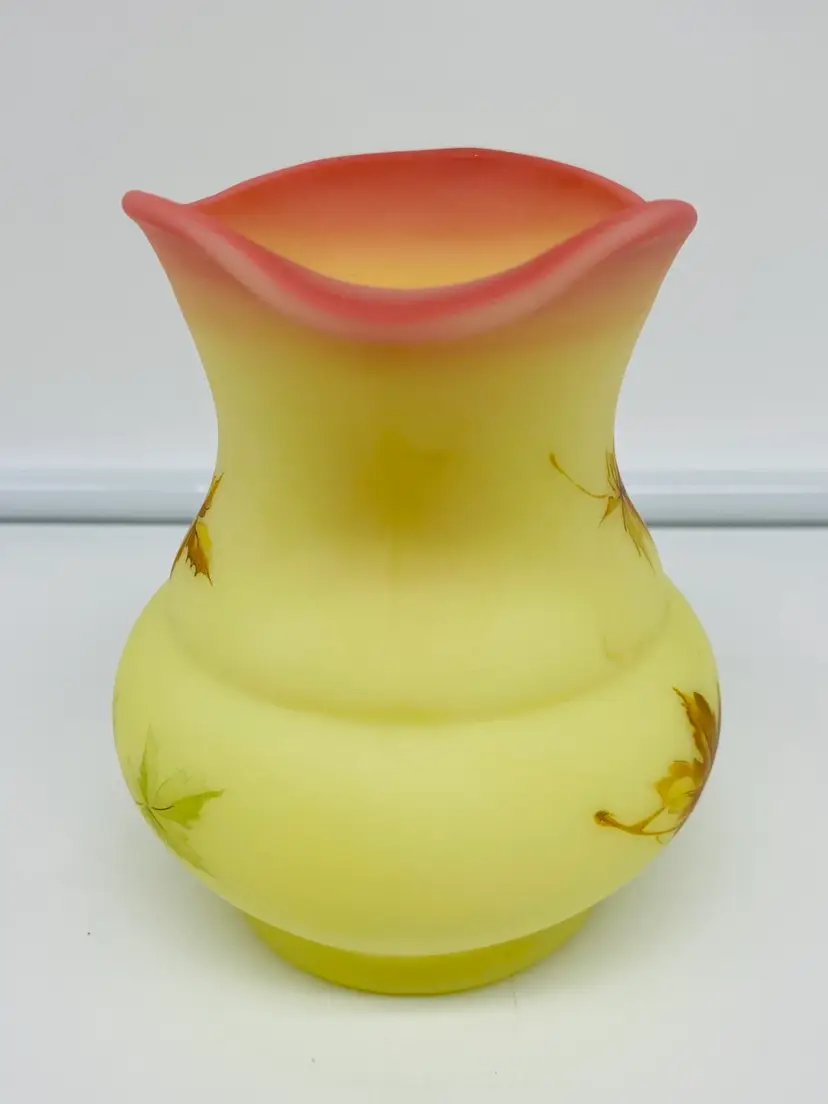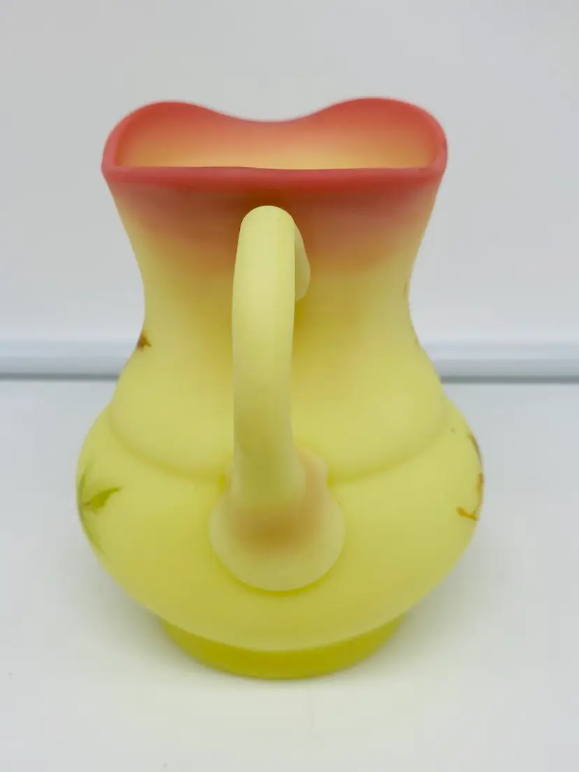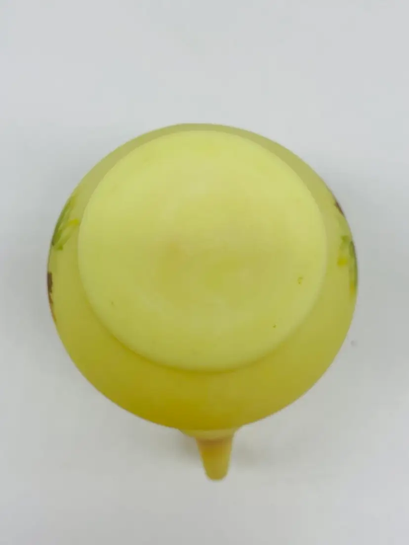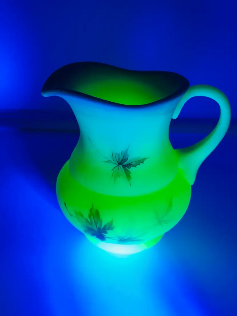 This is in excellent condition. There are no chips or cracks. It is 4-1/4” tall. It glows beautifully under a UV light.