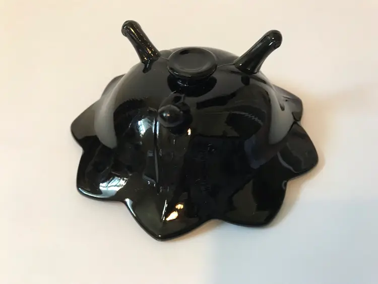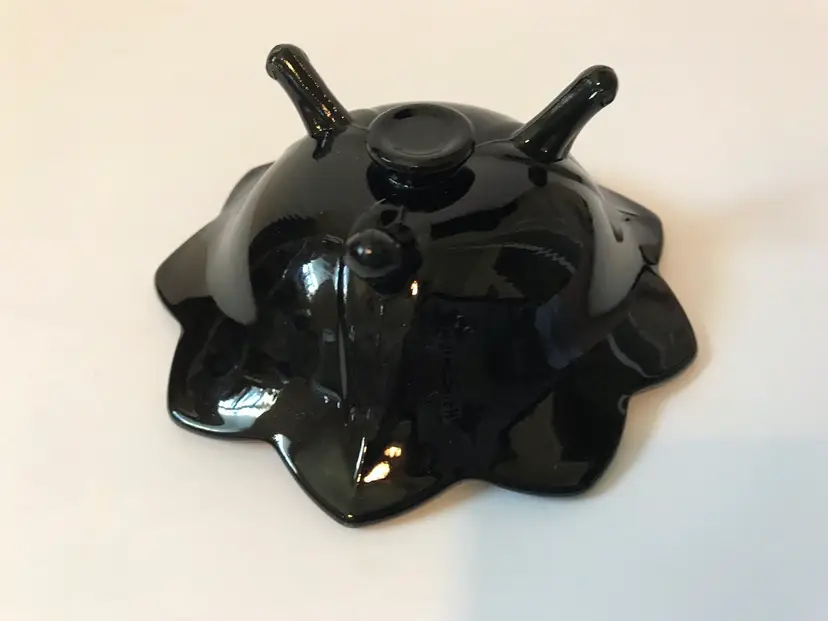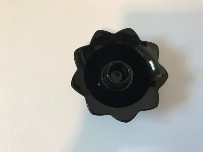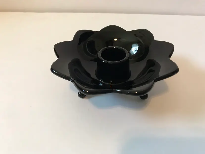 VTG Fenton Black Glass 3-Toed Footed Lotus 9-Petal Taper Candle Holder. 4.5” diameter Excellent condition no breaks or chips
