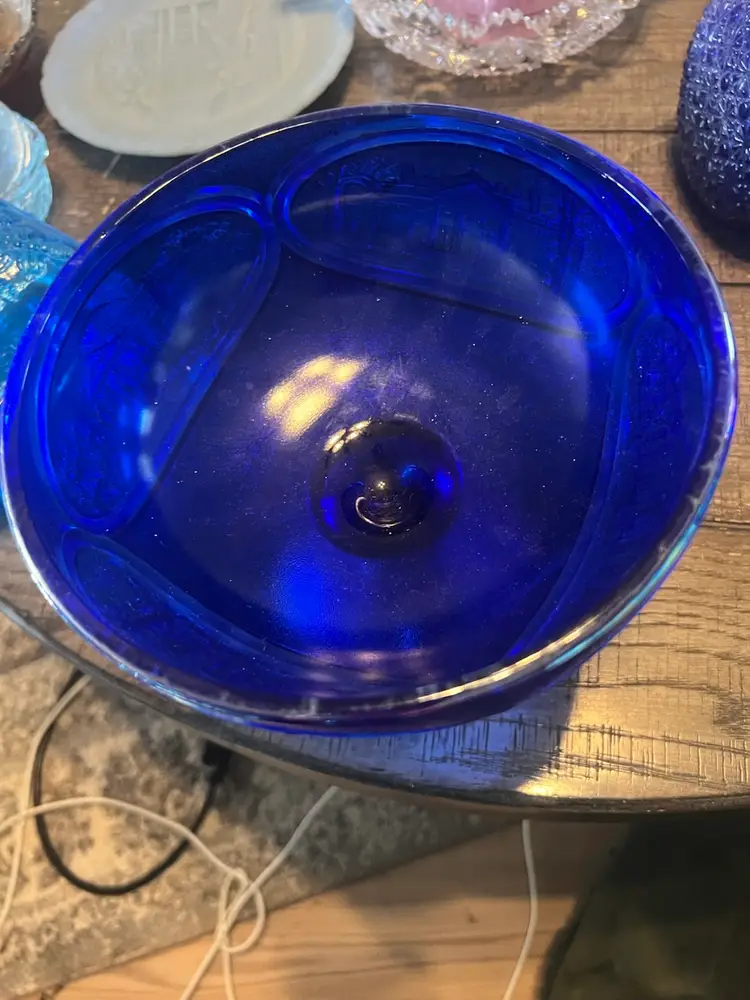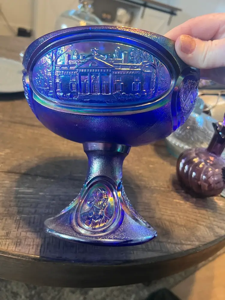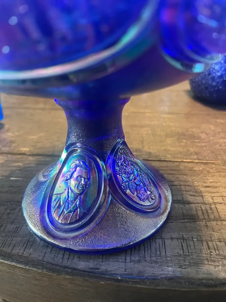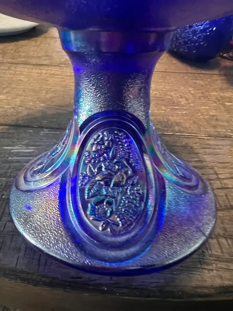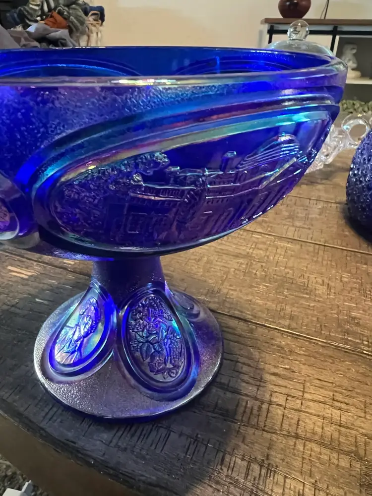 Large Fenton blue carnival glass bicentennial carnival glass candy dish. Although she no longer has a kids she’s still beautiful and useful, excellent condition with no cracks or chips. With lid