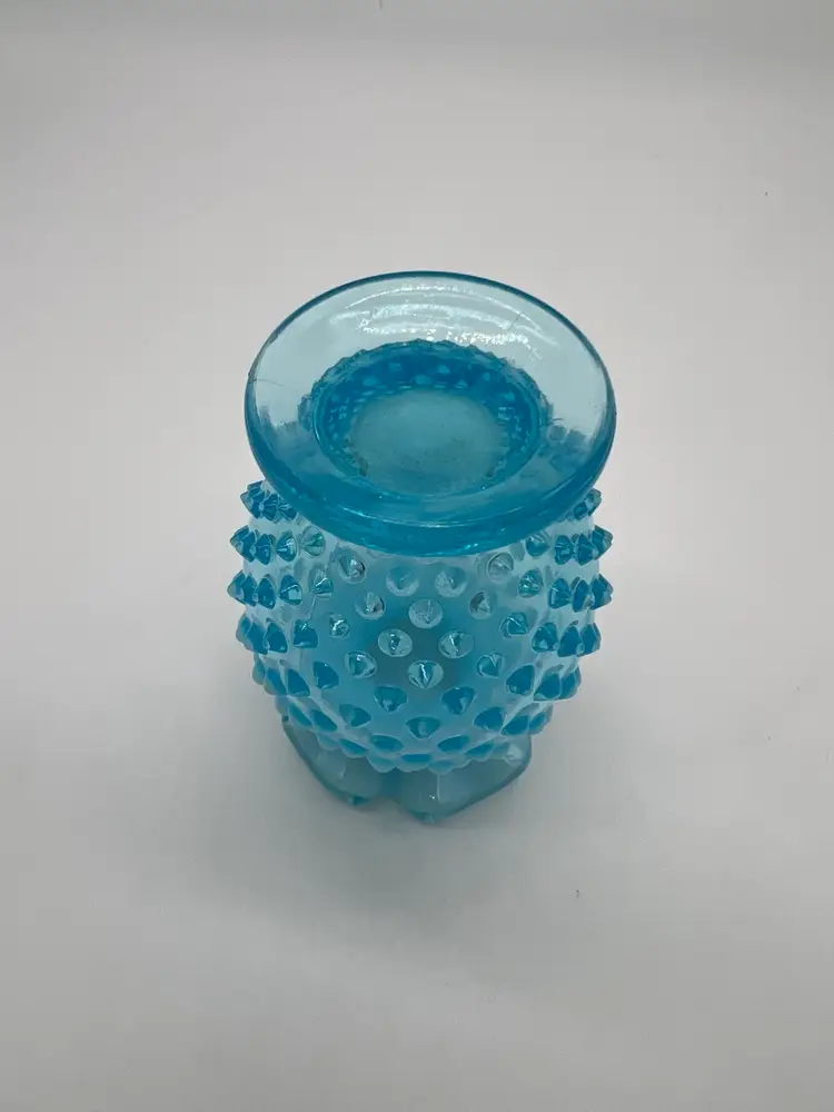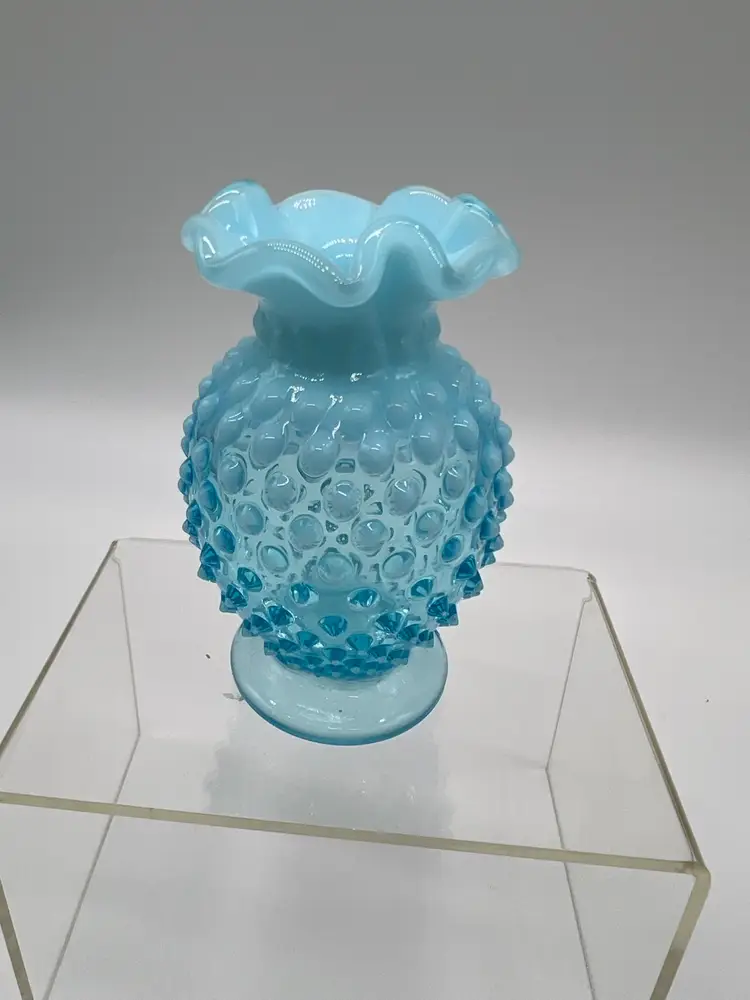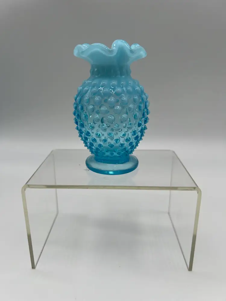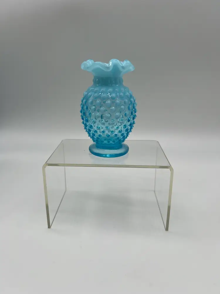 Standing at approximately 4 inches tall, this small vase is perfect for displaying single blooms or small bouquets, making it a versatile addition to your home decor. The ruffled top edge lends an elegant flair, while the hobnail design adds a distinctive vintage touch.