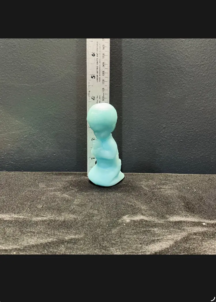The Vintage Fenton Blue Satin Glass Praying Boy Figurine is a beautiful piece of decorative pottery and glassware from the late 20th century. This choir boy figurine features a solid blue color with a matte finish, showcasing the art glass production style of Fenton. Made in the United States, this original piece is a perfect addition to any religious-themed decor.
