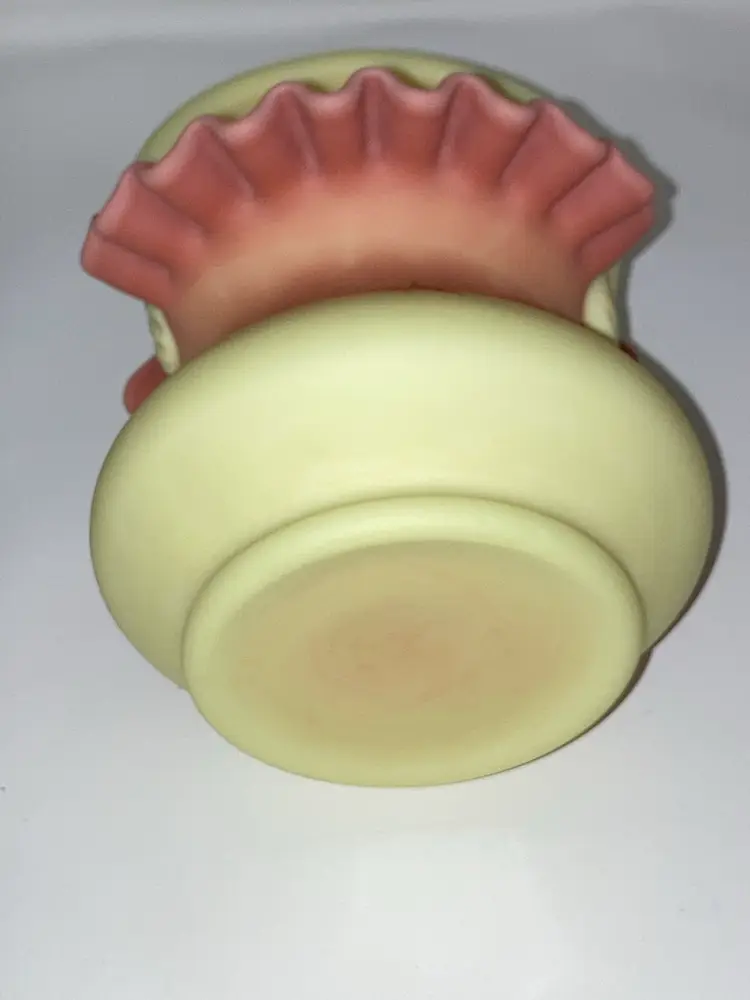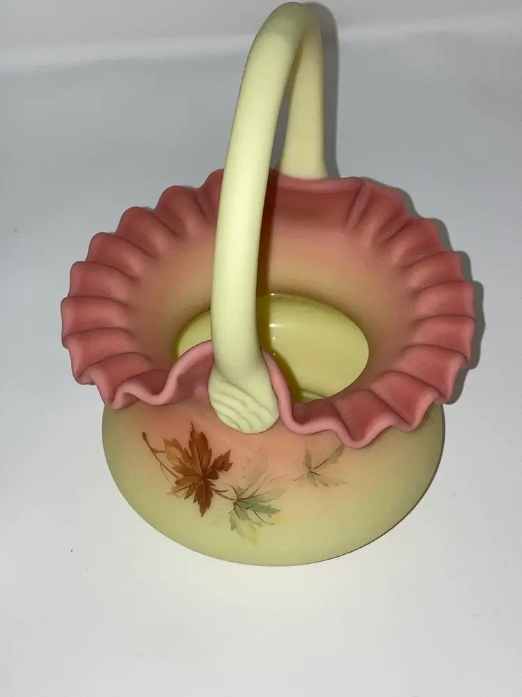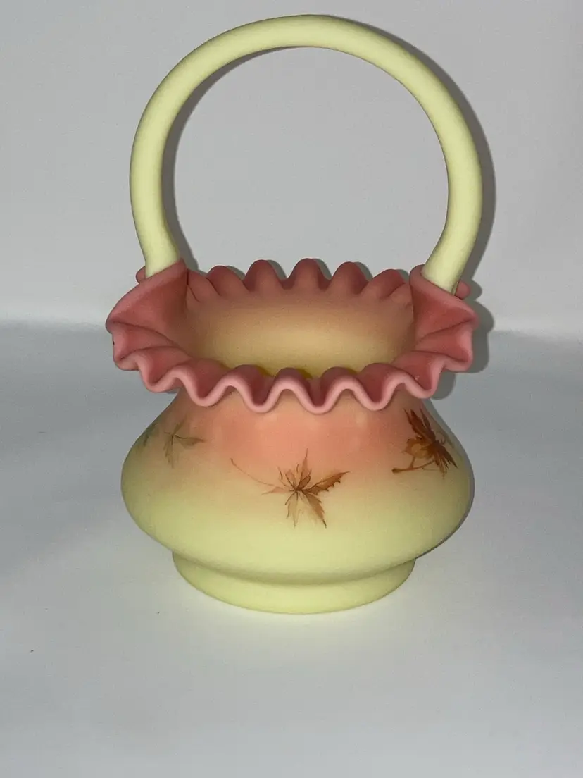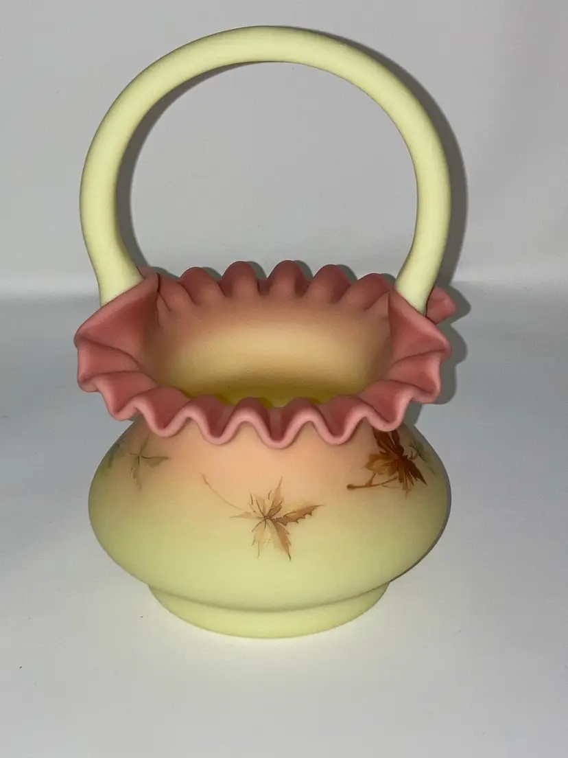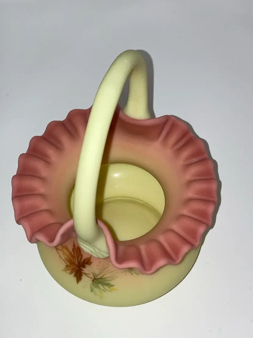 Vintage Fenton Burmese Basket! 5β Wide x 7 1/2β Tall! Fenton Embossed! UV Reactive! Glow π NEW to District? Enter code Michel42 into your wallet prior to your first ever purchase and save $5 off any $10 or more! Give me a Follow and I WILL Follow you back!
