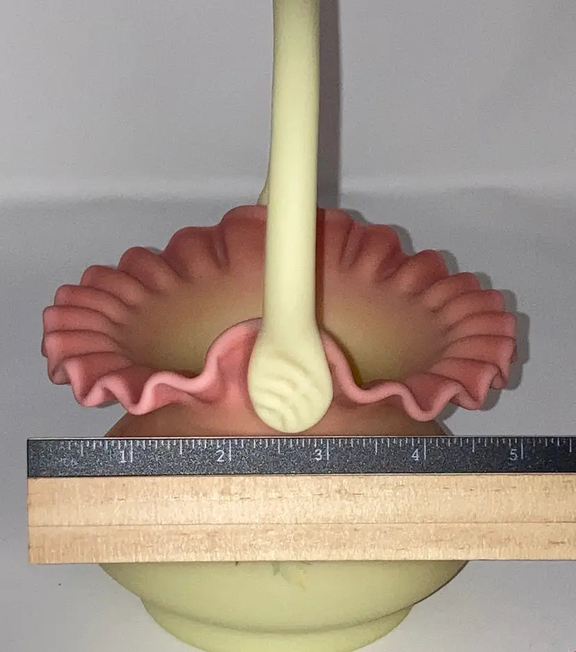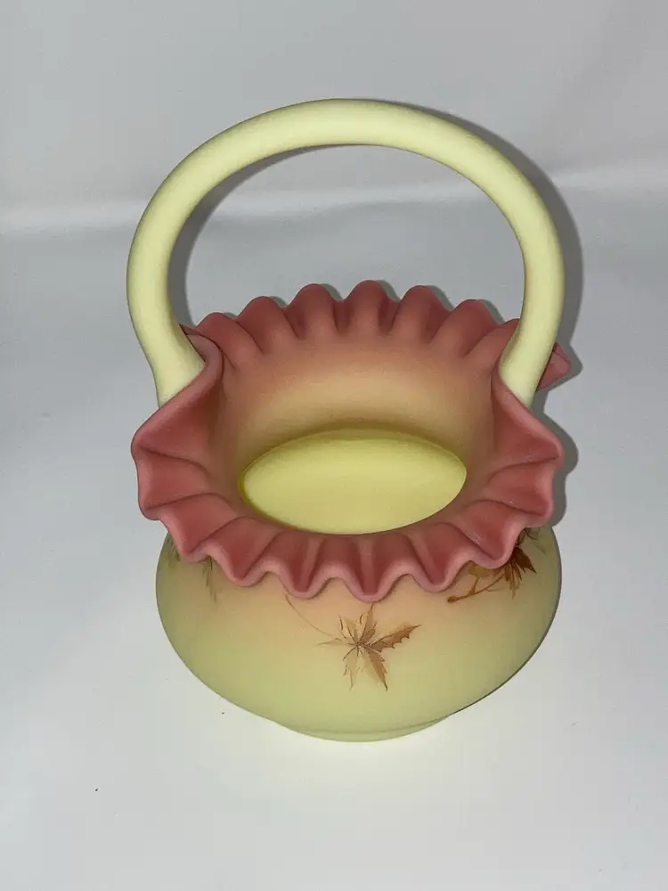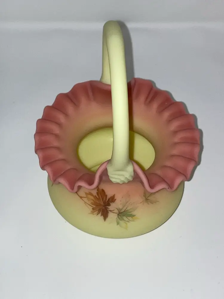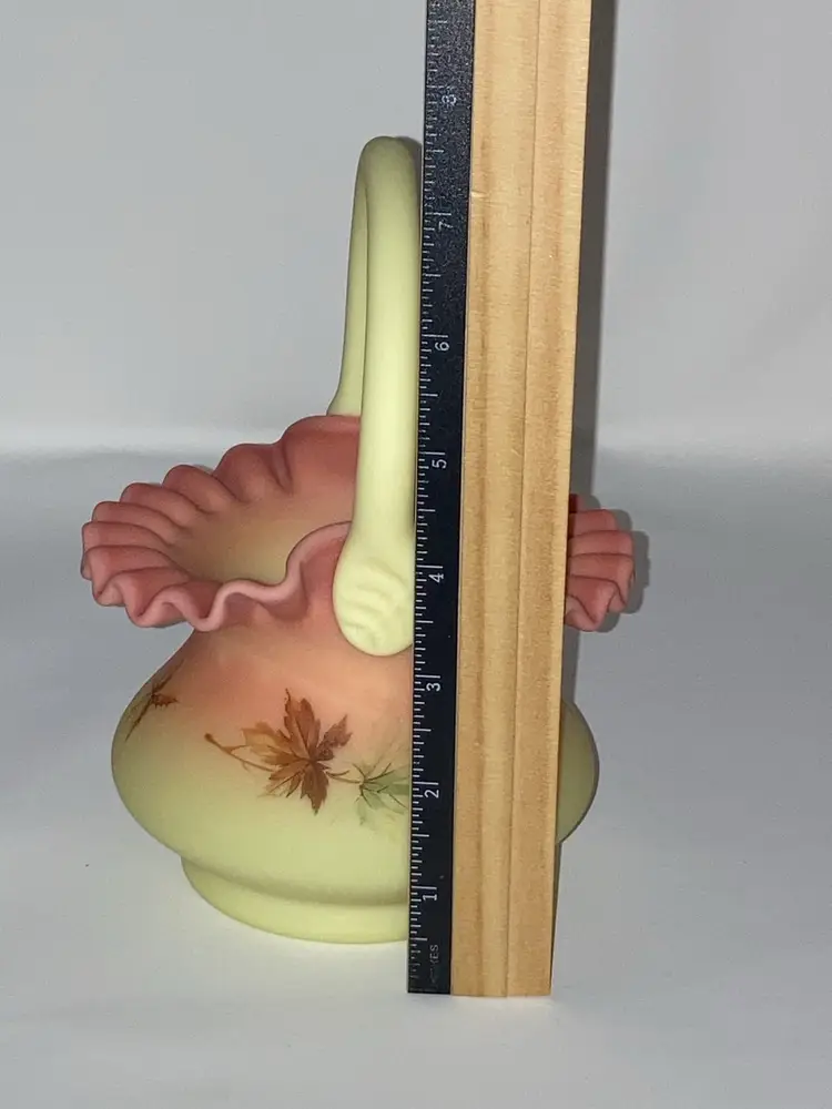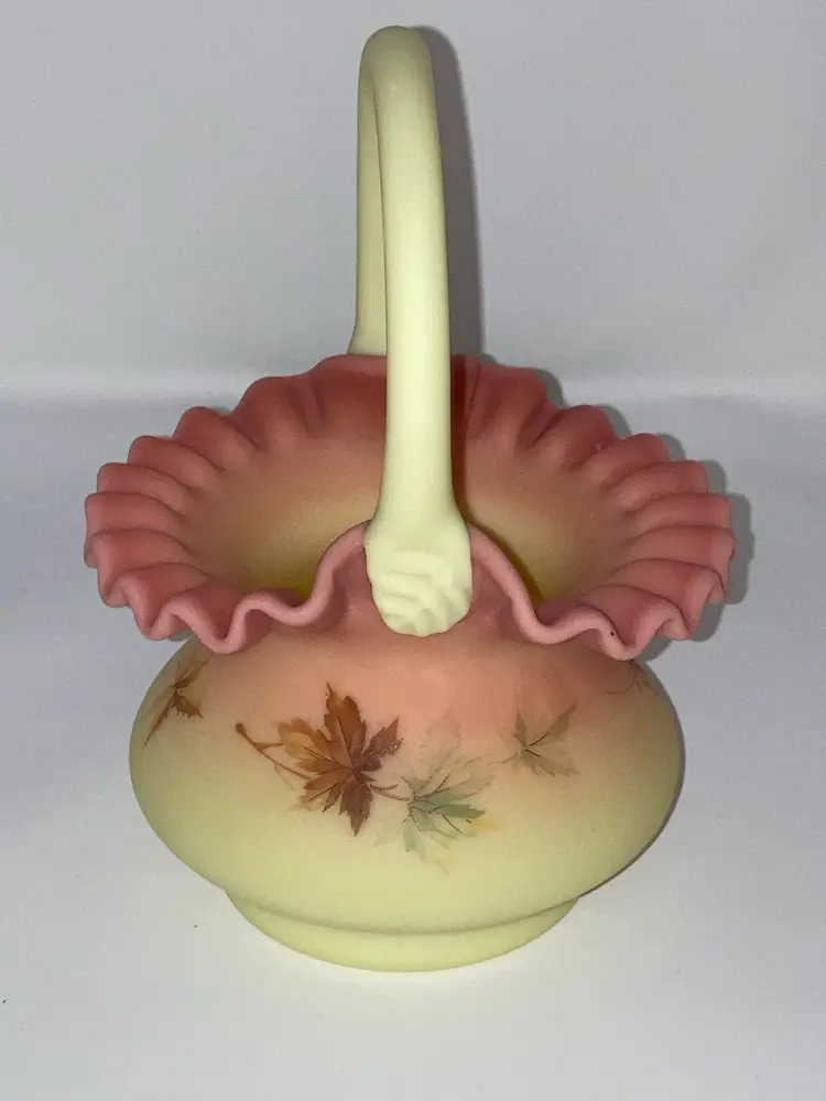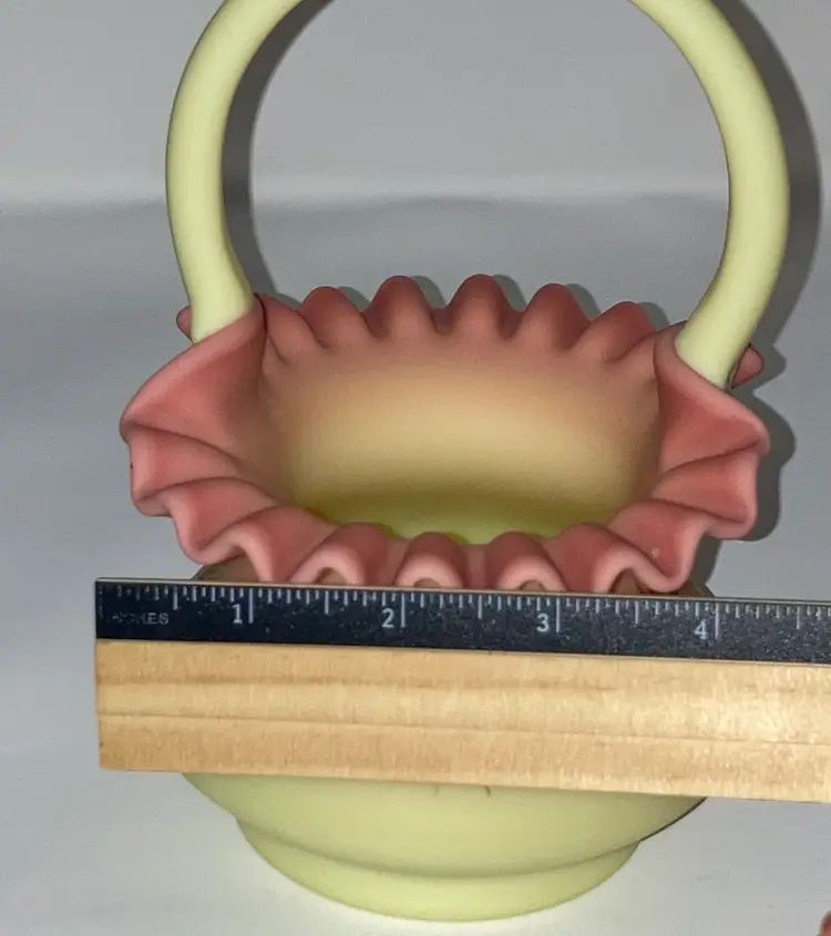 Vintage Fenton Burmese Basket! 5β Wide x 7 1/2β Tall! Fenton Embossed! UV Reactive! Glow π NEW to District? Enter code Michel42 into your wallet prior to your first ever purchase and save $5 off any $10 or more! Give me a Follow and I WILL Follow you back!