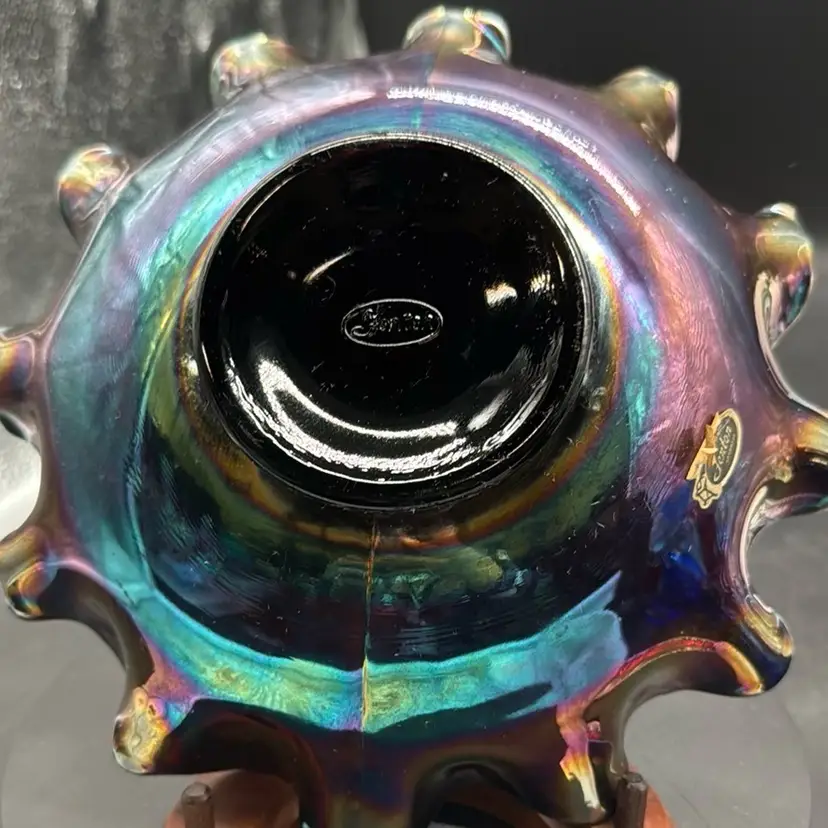 Vintage Fenton Carnival Glass Ruffed Bowl in Amethyst (Holly Pattern)