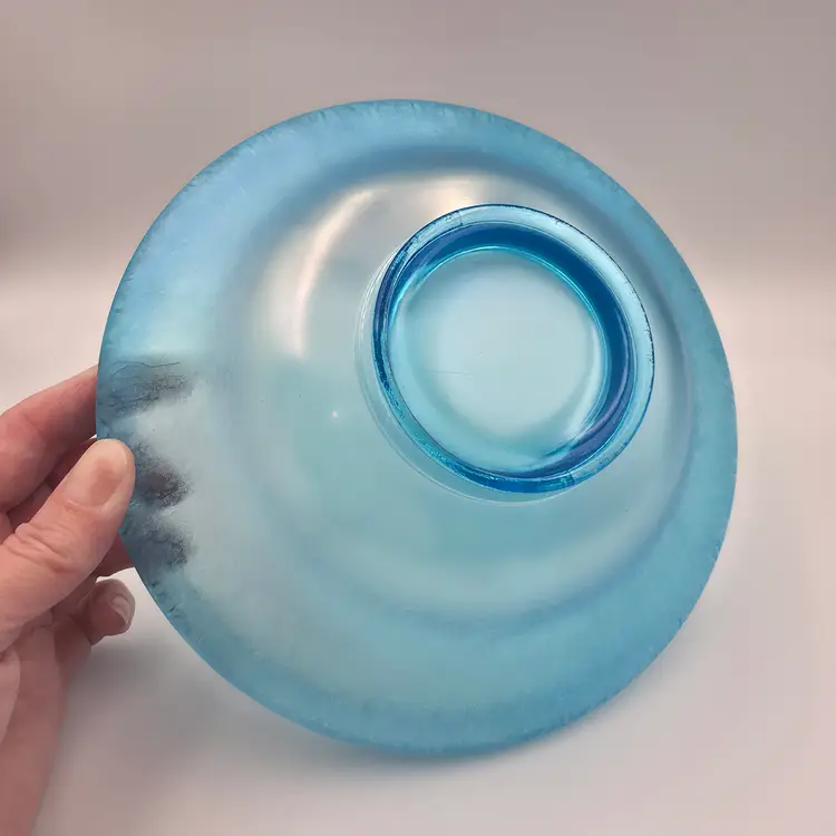 Unmarked cupped edge bowl. Condition ** tiny chip on the side** as seen in picture. Wrinkles / lines in the bottom not cracks. Measures approx 7.25 inches in diameter and 2.75 inches tall. Thank you for looking and have a great day!