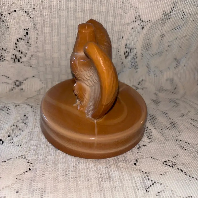 This Fenton Chocolate Slag Glass American Eagle Bicentennial Paperweight from 1976 is a vintage collectible piece originating from North America