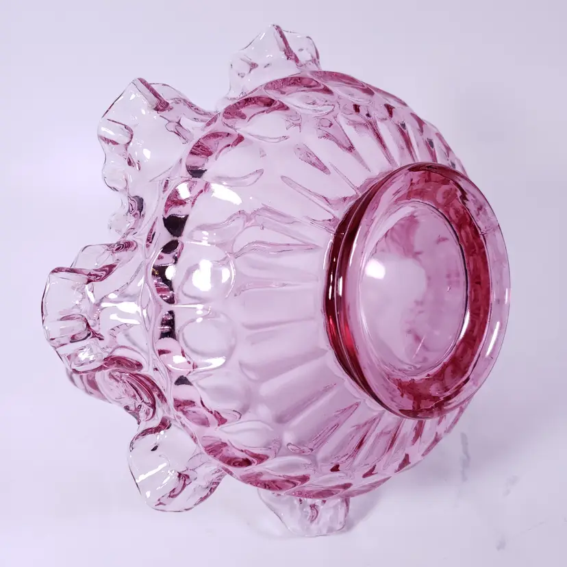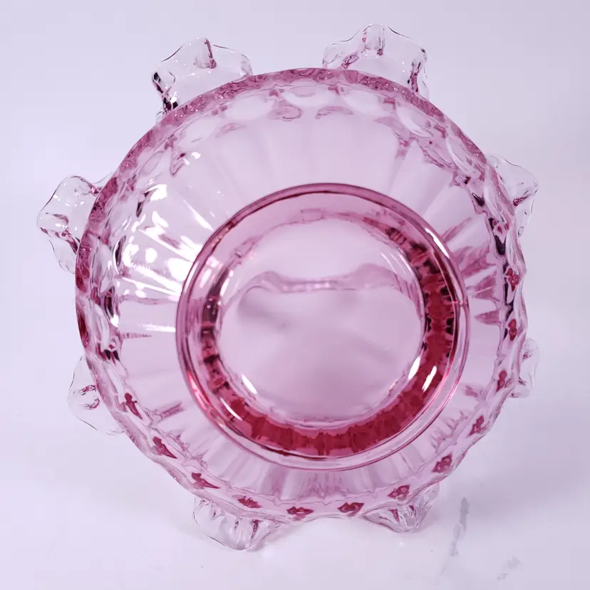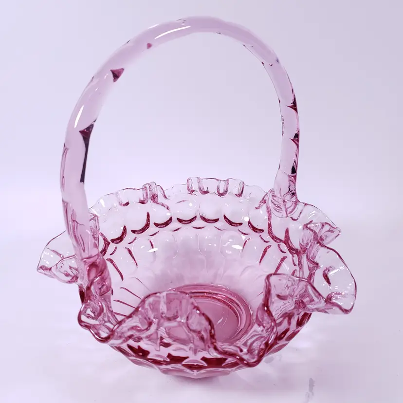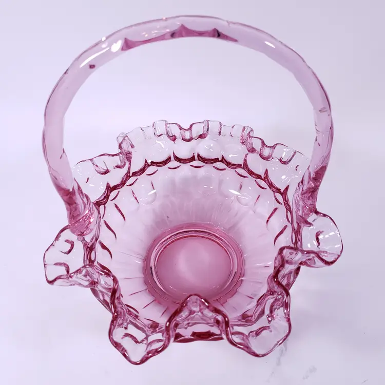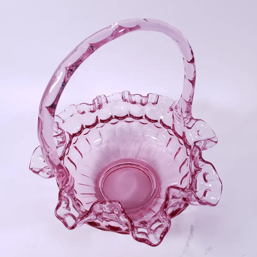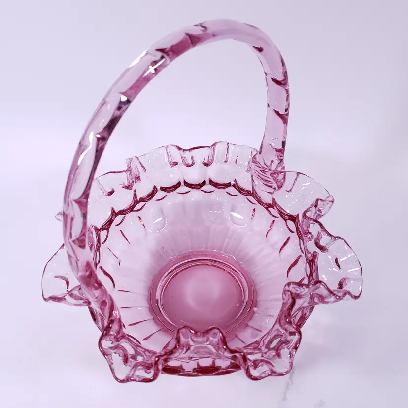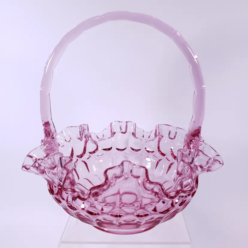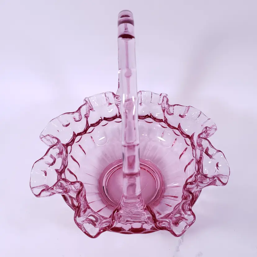 Vintage FENTON Colonial Pink Thumbprint Handled Art Glass BASKET