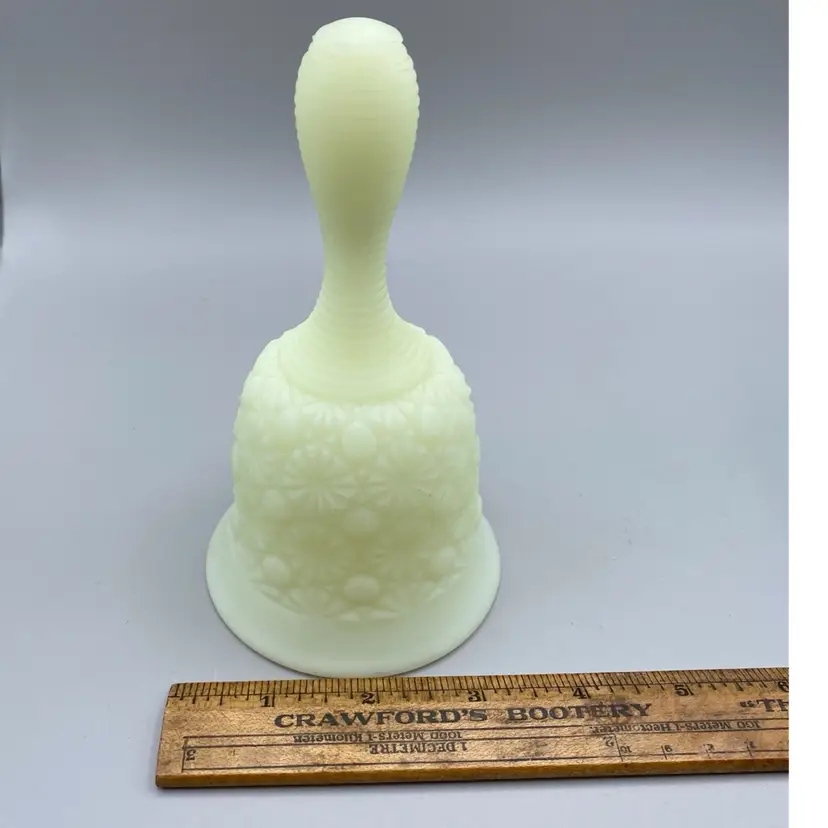 Vintage Fenton Daisy And Button Custard Satin Uranium Glass Art Bell Art Deco UV Glows