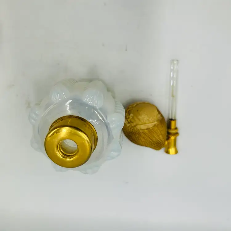 No chips or cracks in the bottle. Atomizer has dried out and netting is torn. These are easily replaced