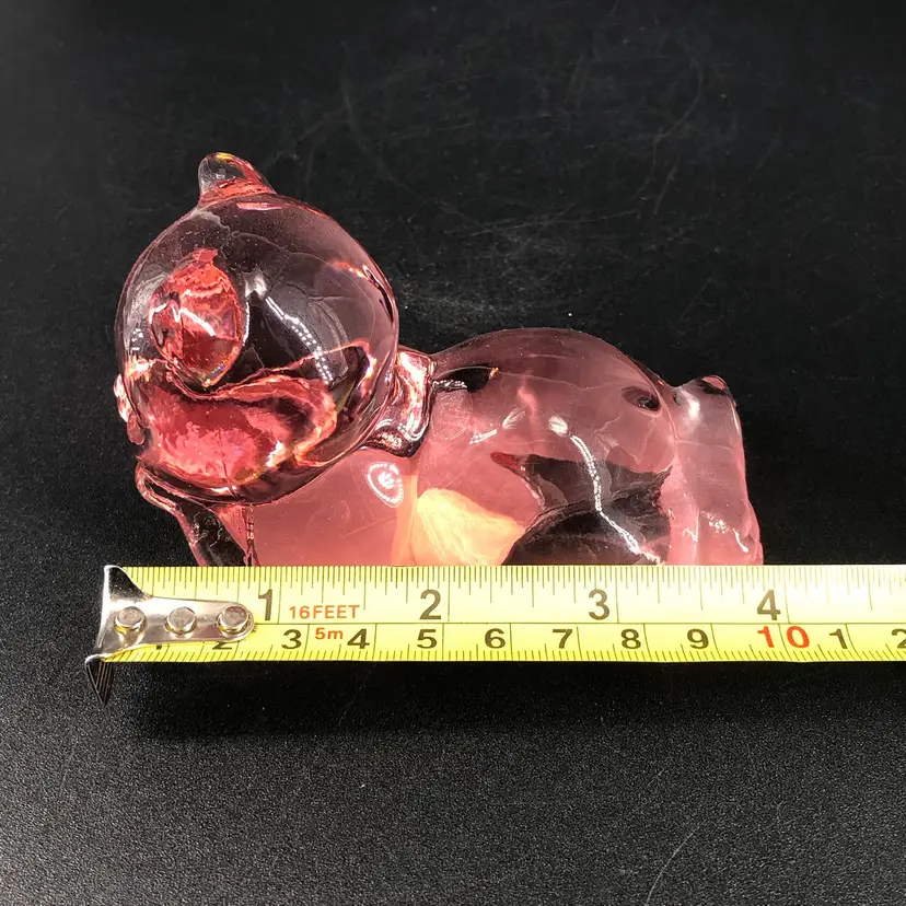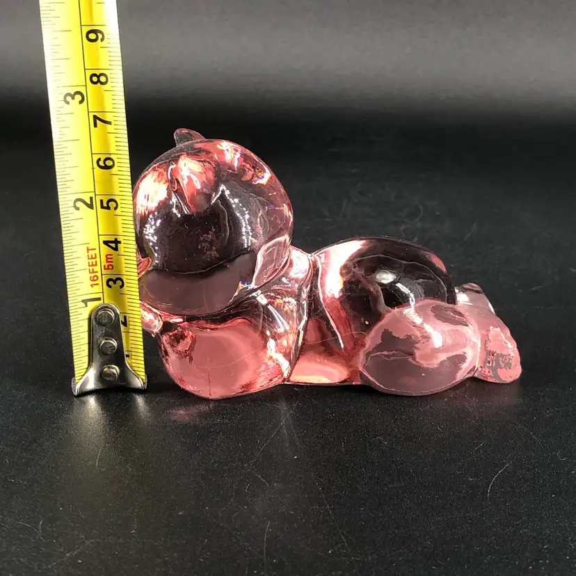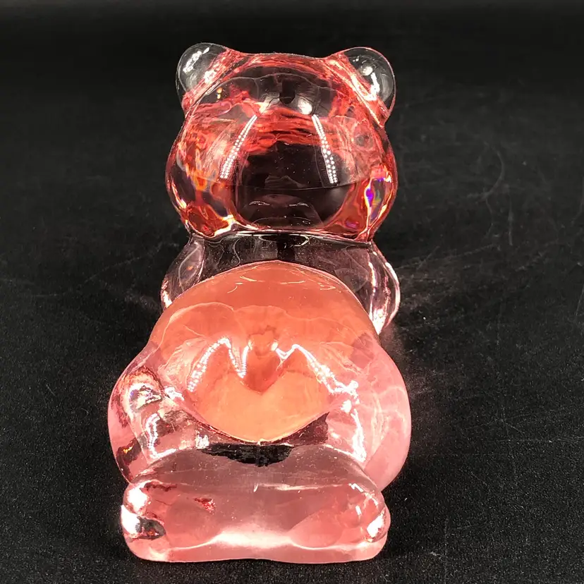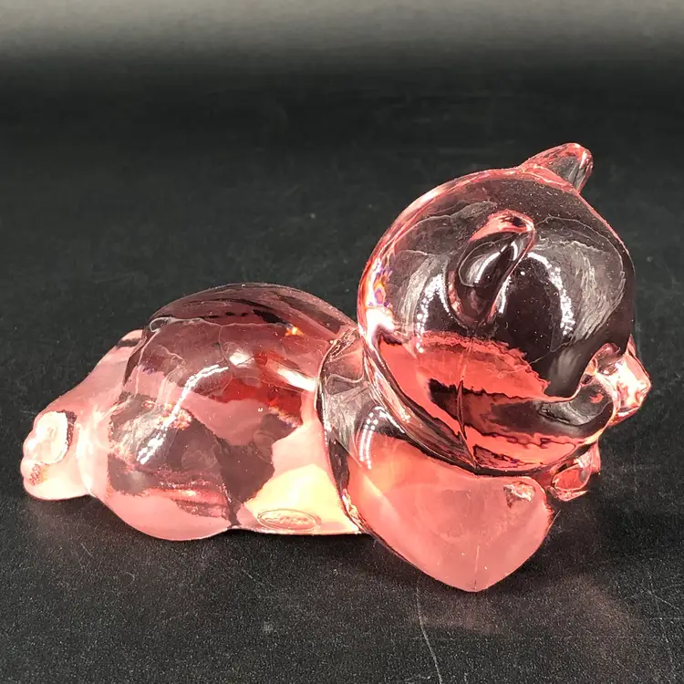 Vintage Fenton Dusty Rose Pink Glass Lying Daydreaming Bear Figurine