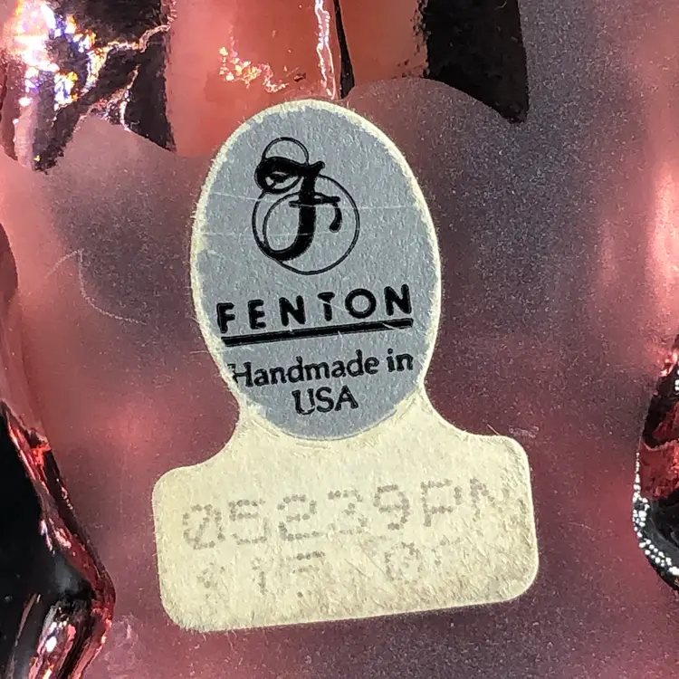 Has the original sticker on the bottom No chips or cracks Absolutely adorable Has the Fenton stamp on it