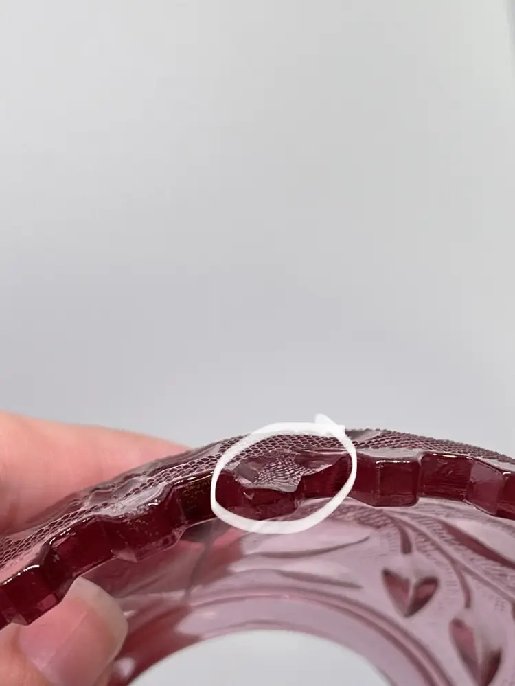 Vintage Fenton Fireball Fairy Lamp- the pictures do not do this piece justice, it is far more beautiful in person! Pink/cranberry in color, the wildfire and lace pattern is actually cut into the glass and has the Fenton F on the bottom.
