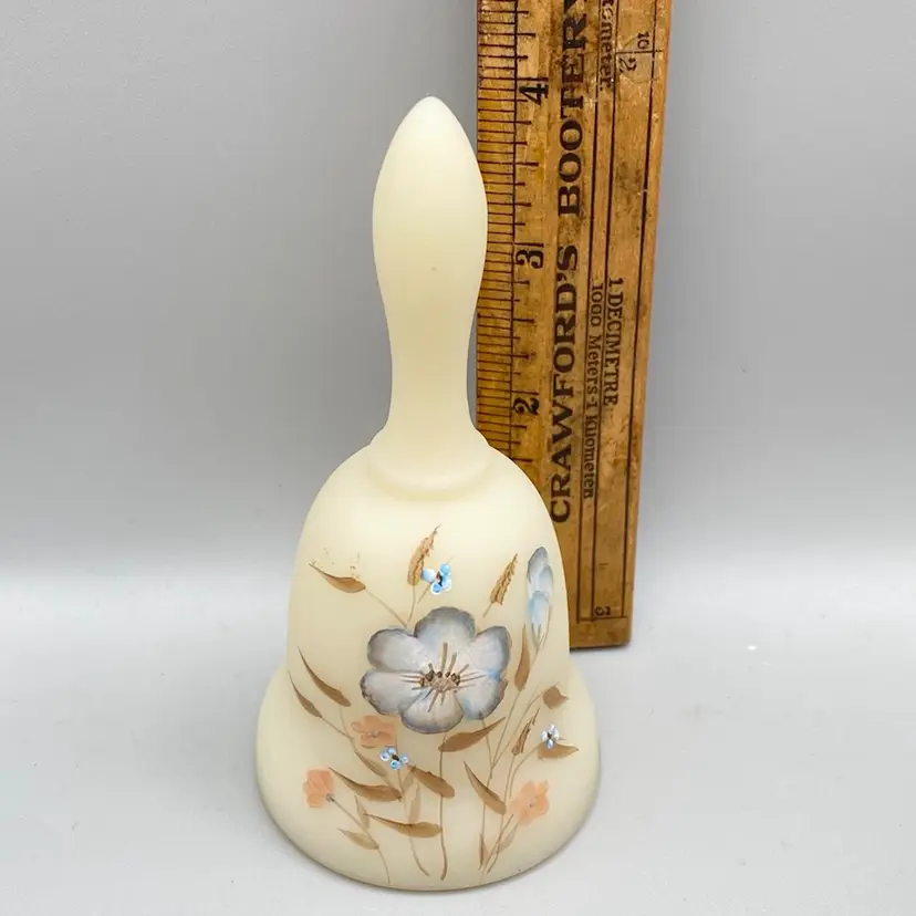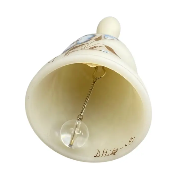 Fenton Glass Custard Floral Bell Signed D Hill W Label