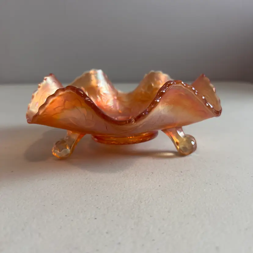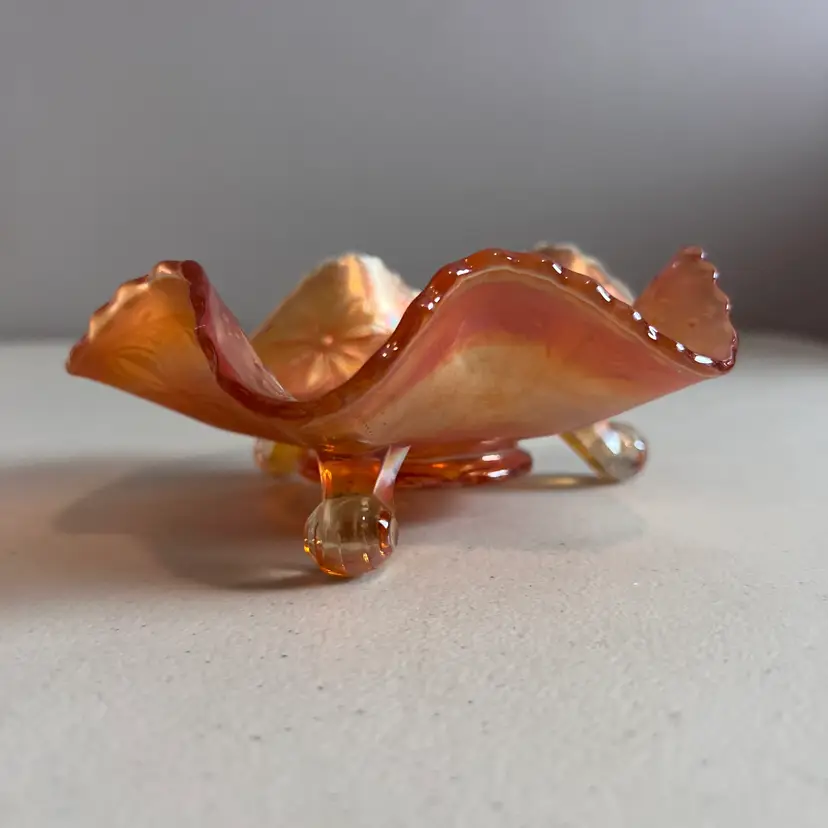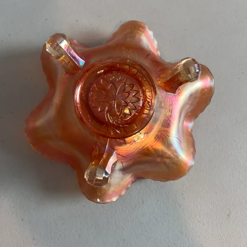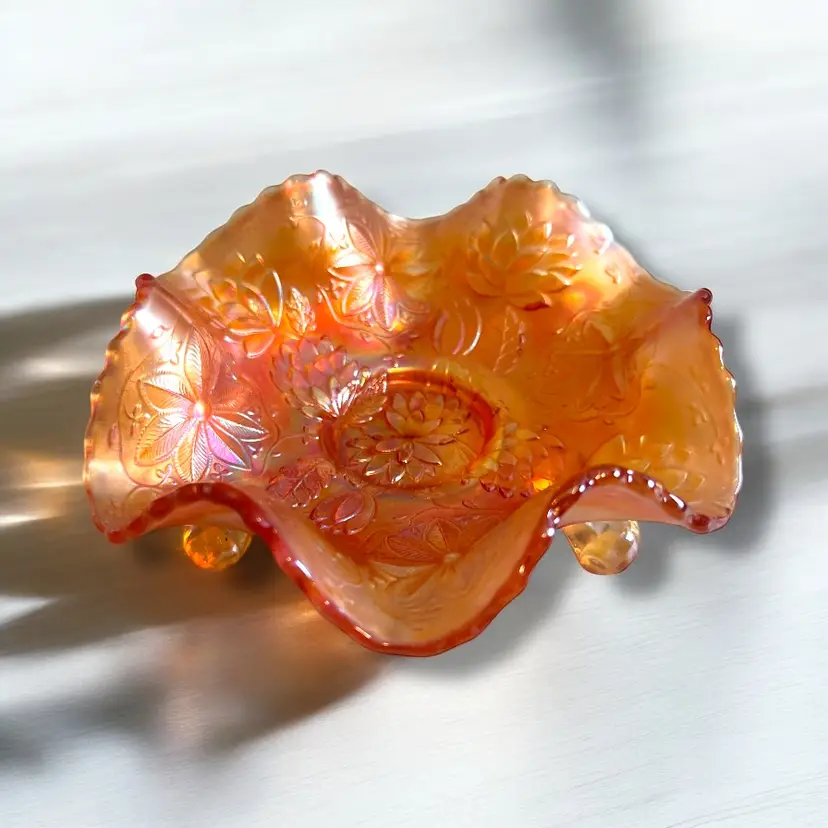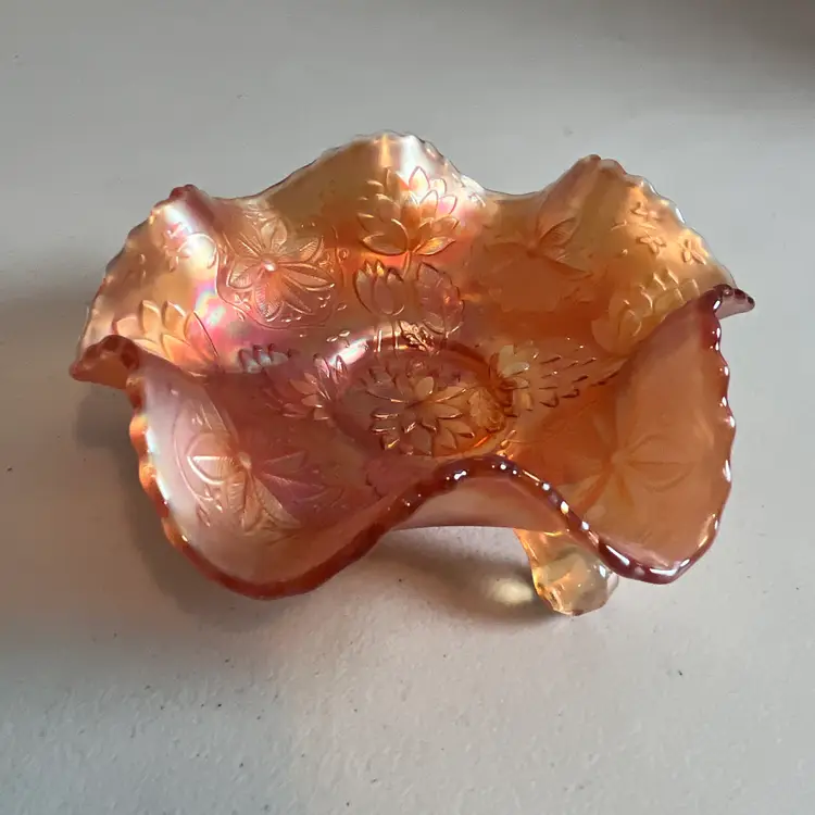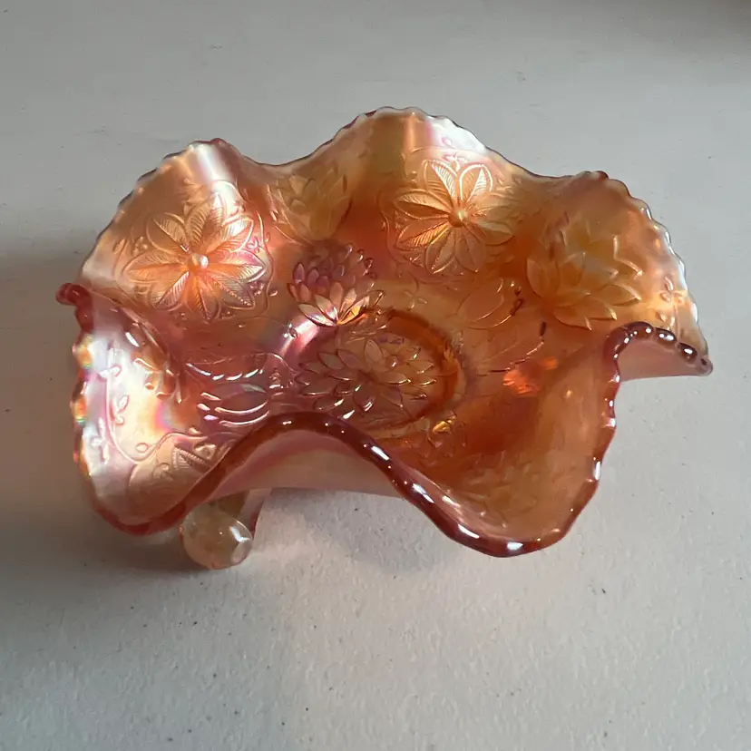 Here We Have a Vintage Fenton Glass Lotus & Poinsettia Marigold Carnival Glass Sauce Bowl