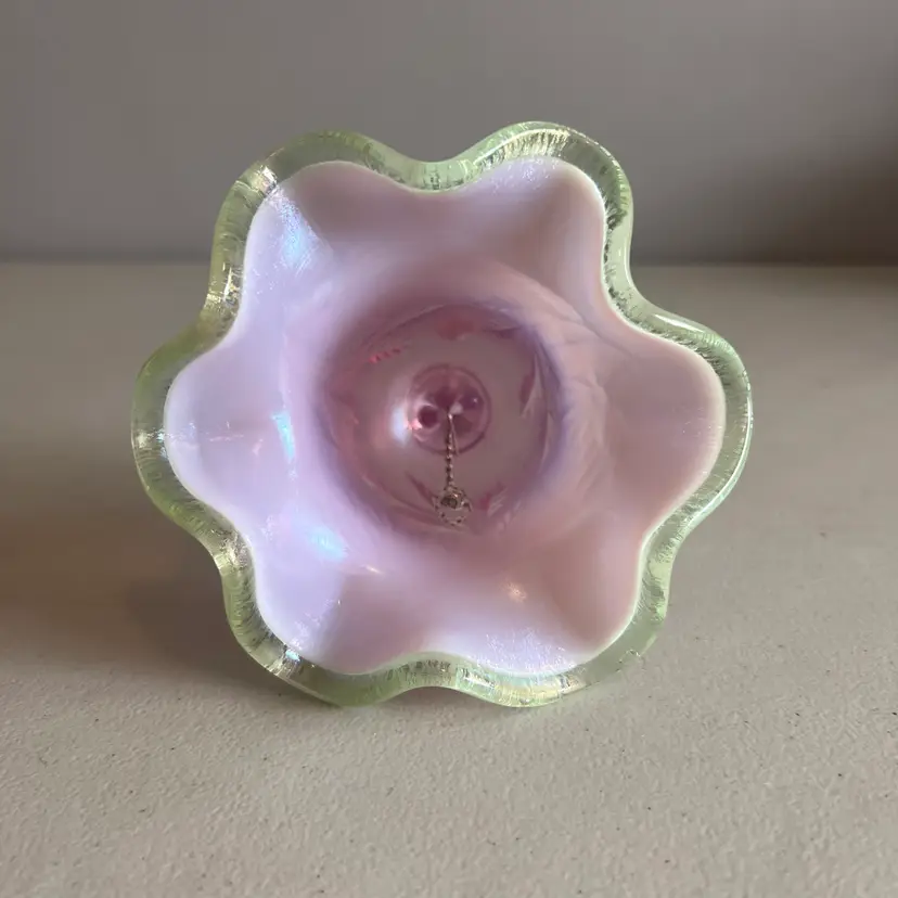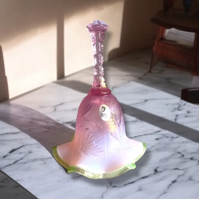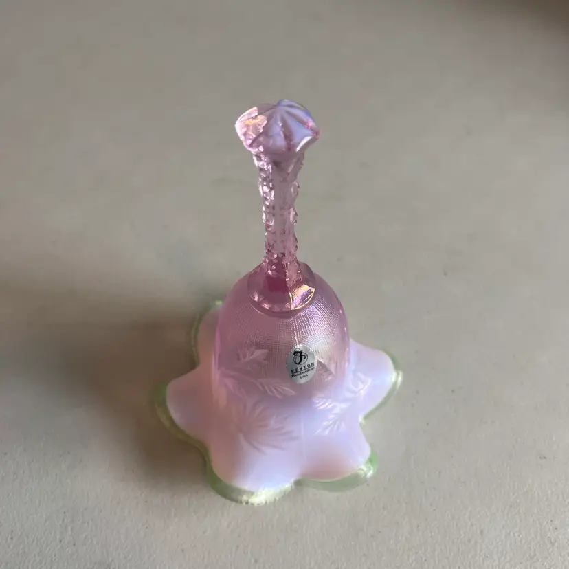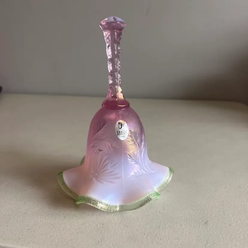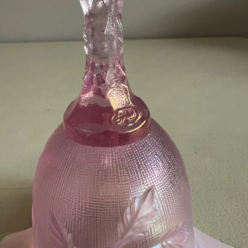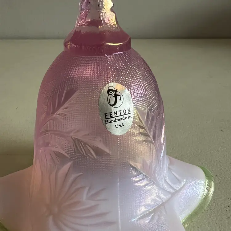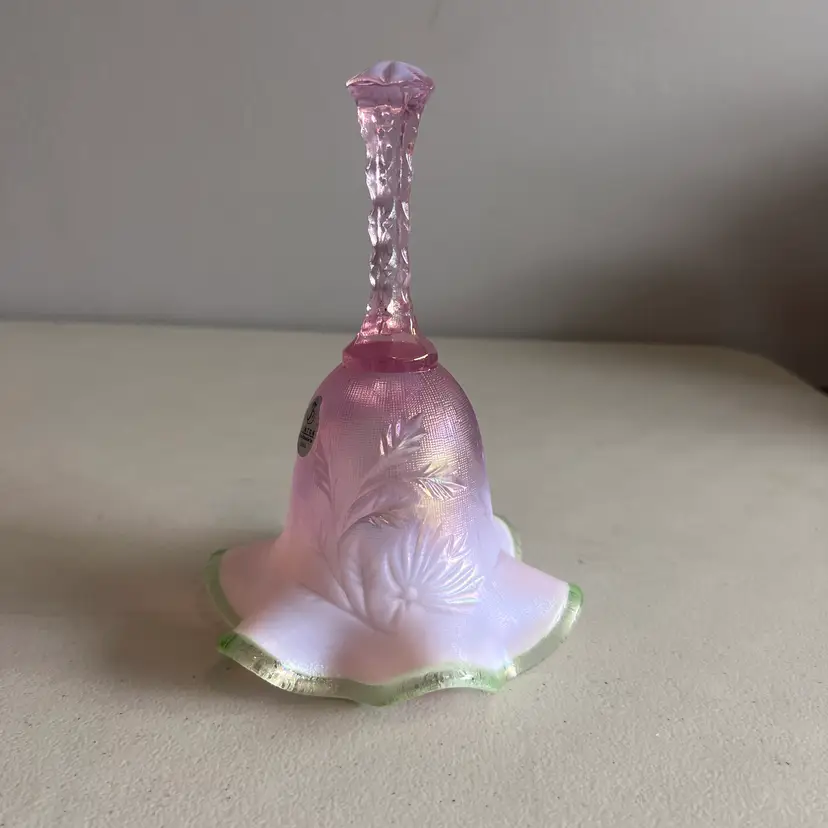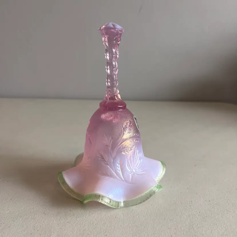Here We Have a Vintage Fenton Glass QVC Exclusive Iridized Rose Intaglio Bell Opalescent C4560