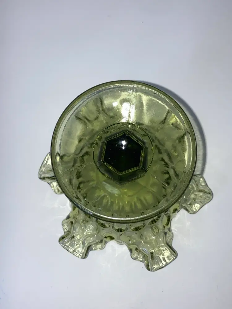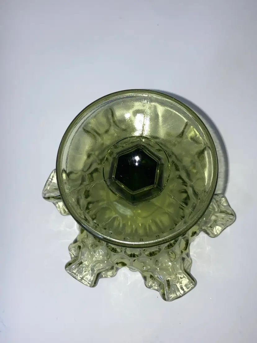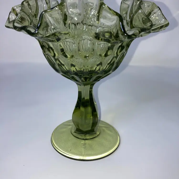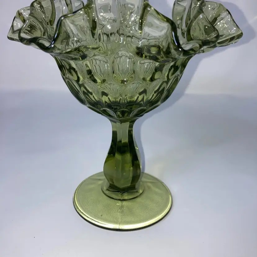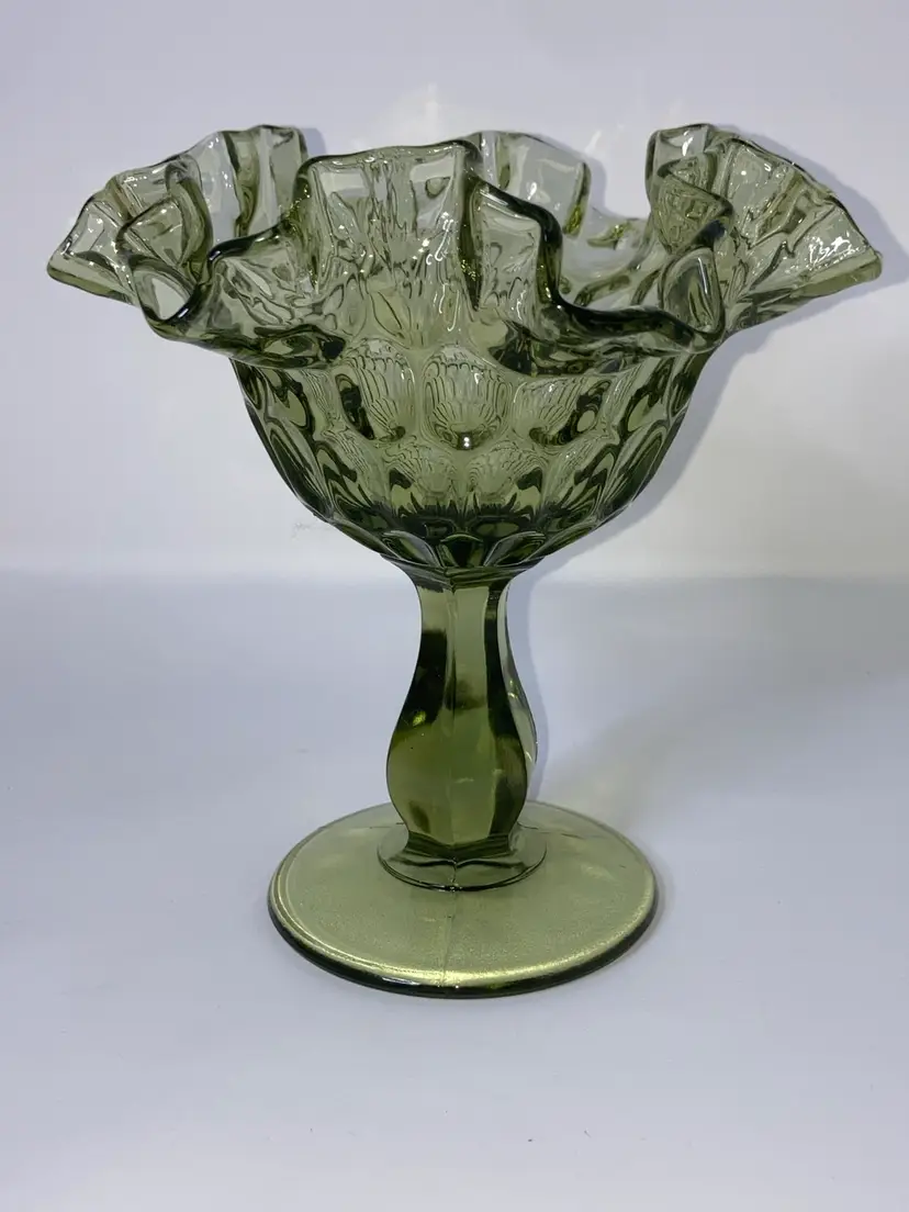 Vintage Fenton Green Thumbprint Compote! Crimped and Ruffled Rim! 6โ Tall 6โ Wide! UV Reactive! Glow ๐ NEW to District? Enter code Michel42 into your wallet prior to your first ever purchase and save $5 off any $10 or more! Give me a Follow and I WILL Follow you back!