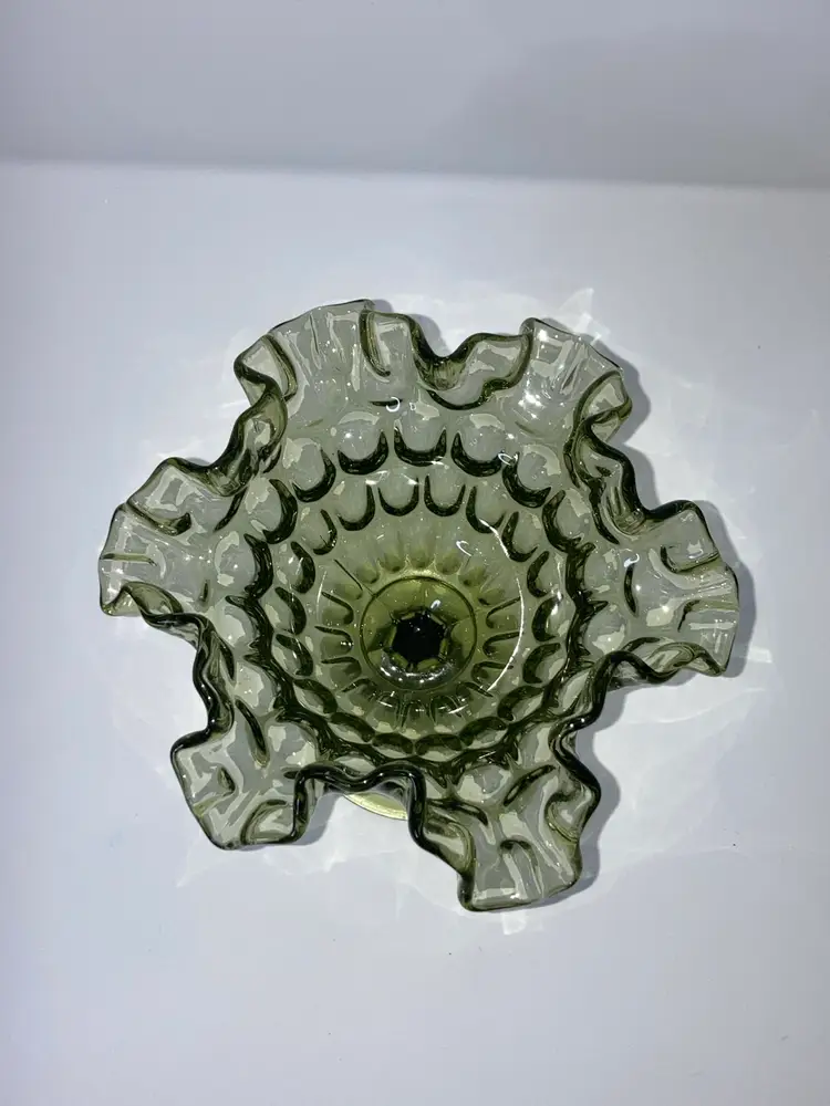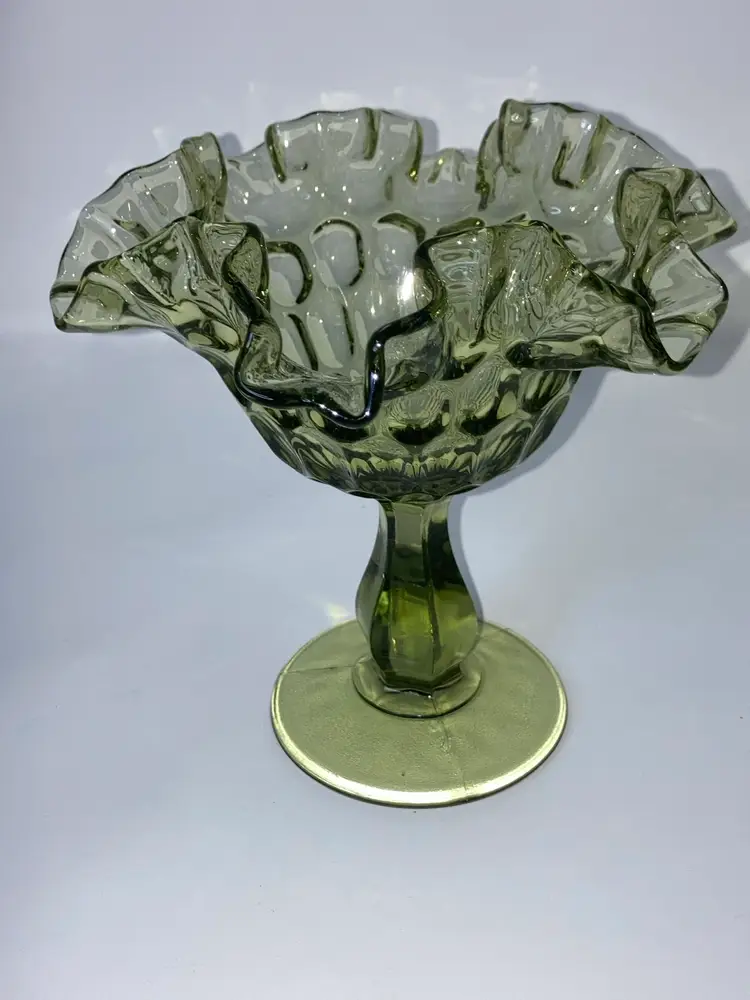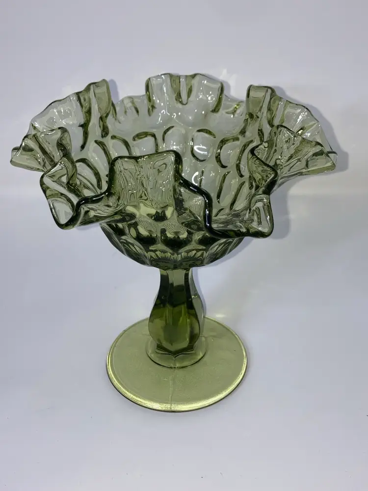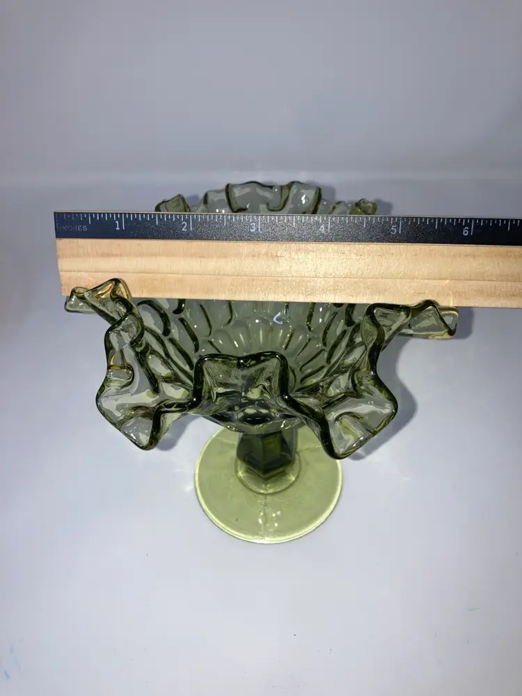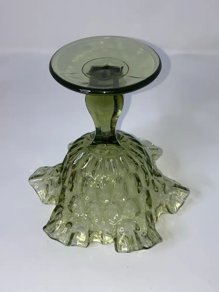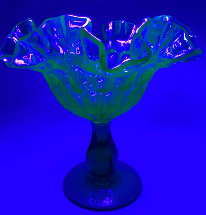 Vintage Fenton Green Thumbprint Compote! Crimped and Ruffled Rim! 6โ Tall 6โ Wide! UV Reactive! Glow ๐ NEW to District? Enter code Michel42 into your wallet prior to your first ever purchase and save $5 off any $10 or more! Give me a Follow and I WILL Follow you back!