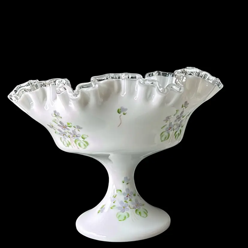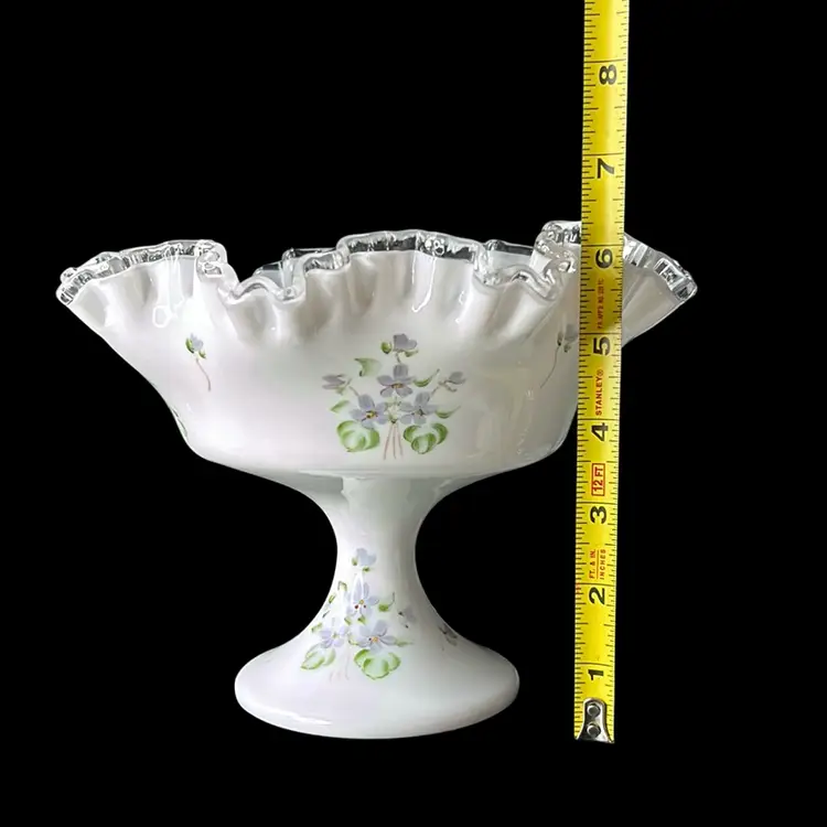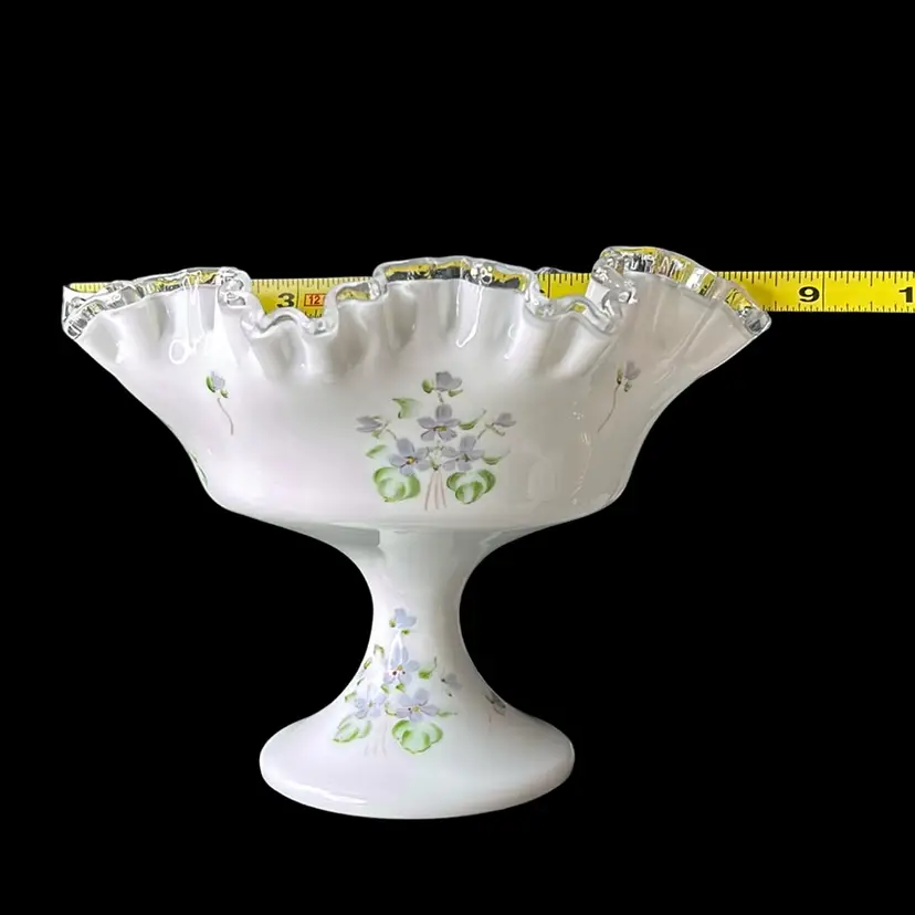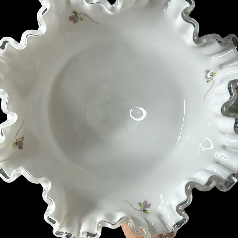 Flowers painted inside & outside - GLOWING rim - 8.25” x 6.25”