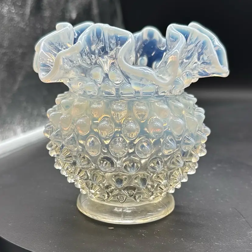 Vintage Fenton Handmade French Opalescent Hobnail Double Crimped Edge 4" Vase