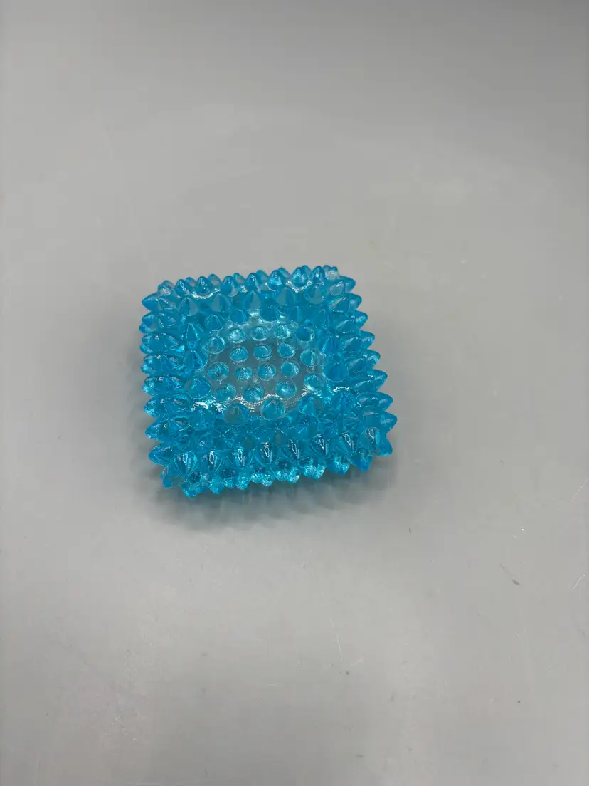 This charming Fenton hobnail salt cellar showcases the distinctive textured pattern that defines the brand's classic glassware collection. Crafted in rich blue glass, the piece measures 1 by 3 inches, making it an ideal size for tabletop service or display. The hobnail design—characterized by its raised, rounded bumps—creates visual depth and catches light beautifully. A treasured vintage find for collectors and enthusiasts of mid-century American glassware.