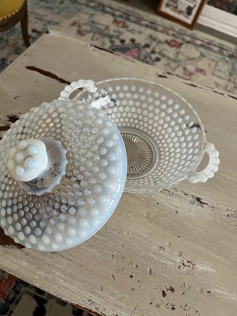 Beautiful Fenton Opalescent covered dish. Perfect, no chips or cracks!