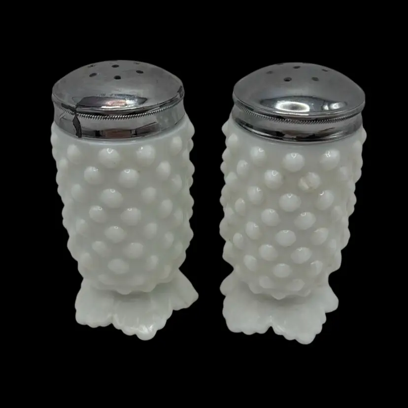 Featuring the 3609 design with flower petal shaped feet and chrome lids. One lid has some wear but both are in very nice condition for the age.