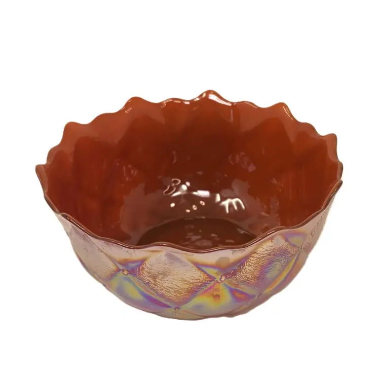 The iridized marigold color is very intriguing - in regular light, it is a deeper amber color, but under a brighter, direct light it appears much more orange. I have included pictures of the bowl in both lighting conditions.