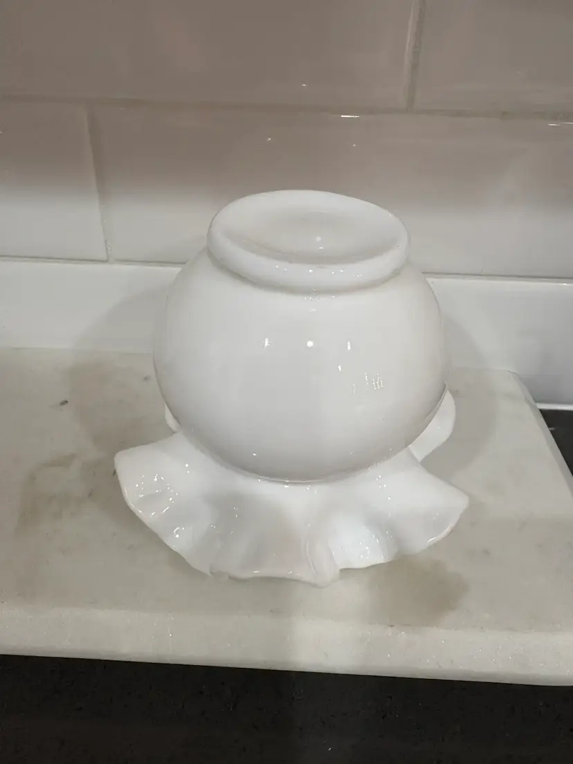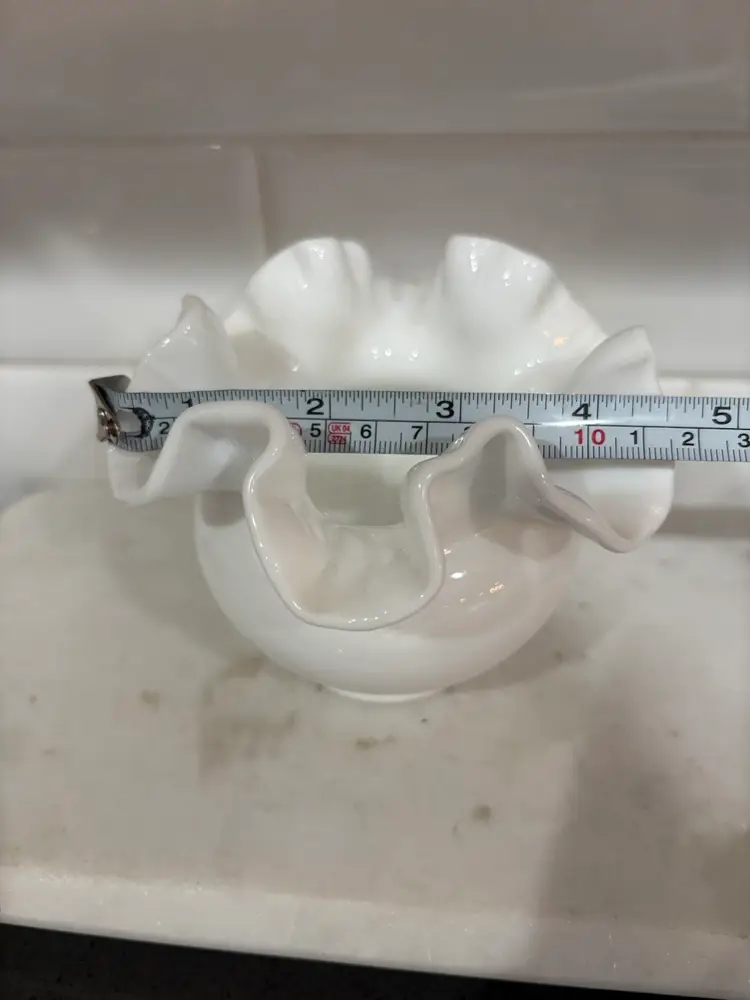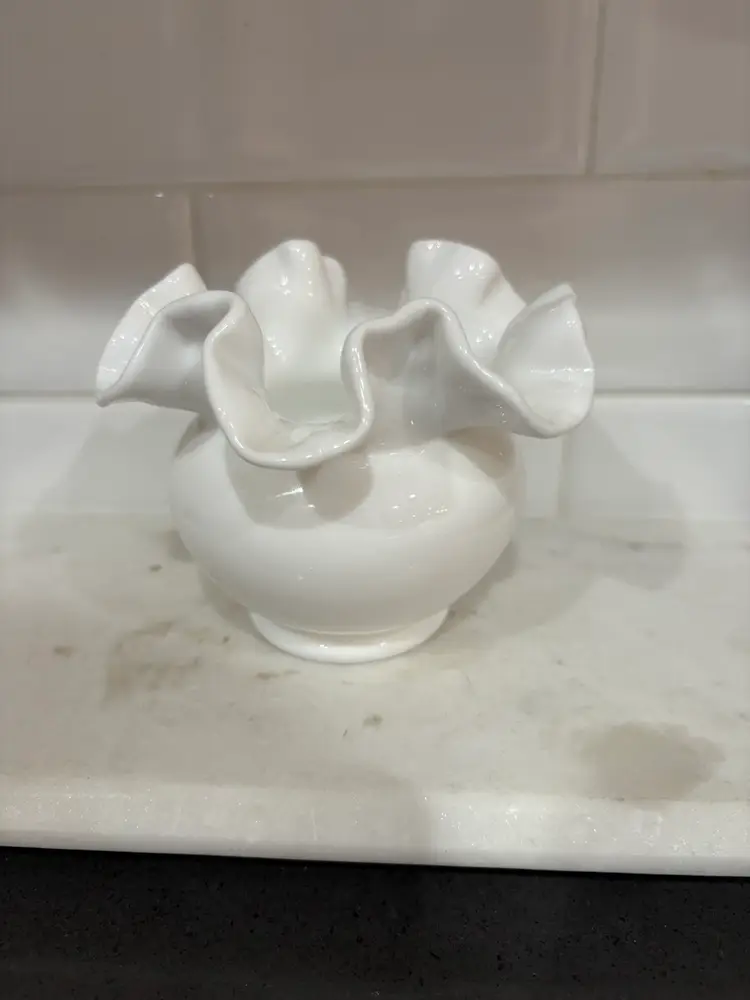 Vintage Fenton Milk Glass Double Crimped Squat Vase