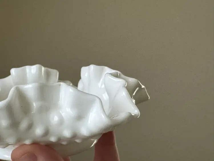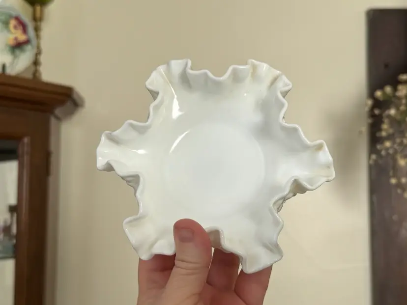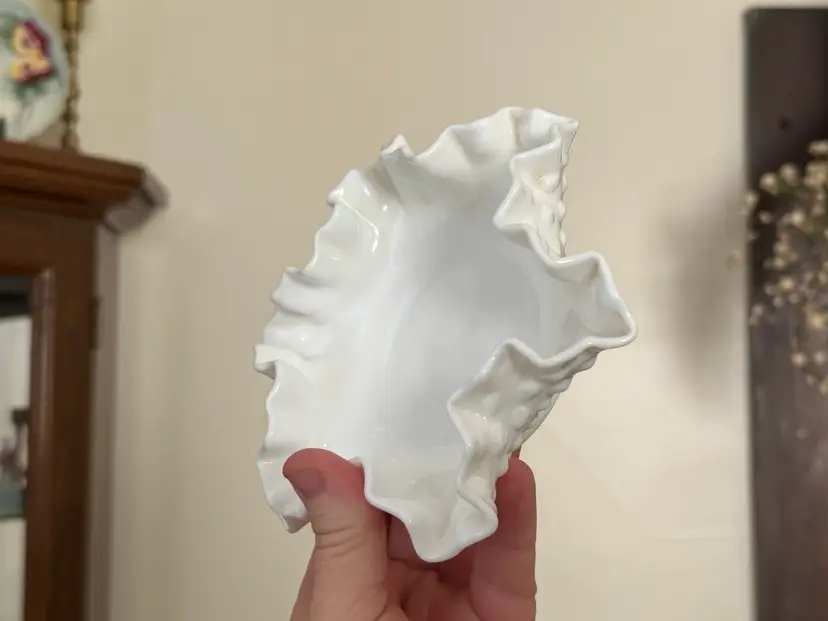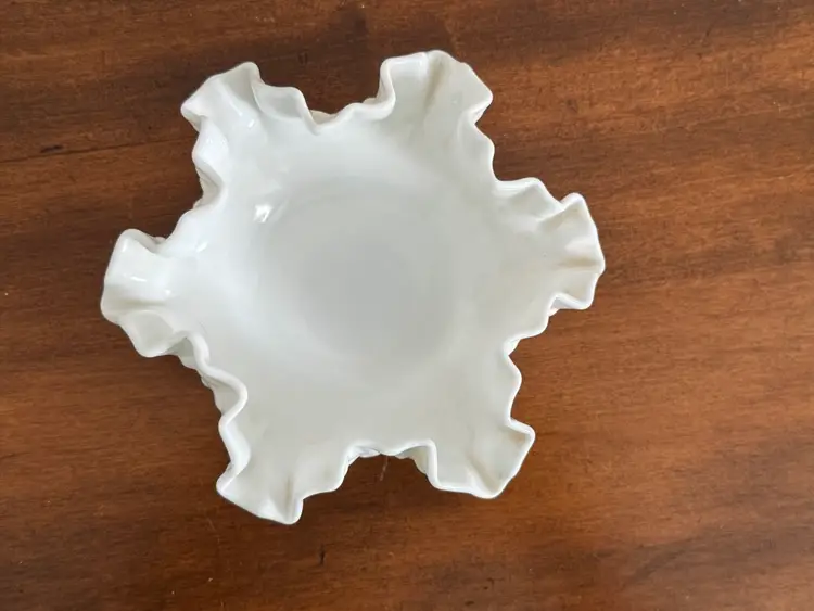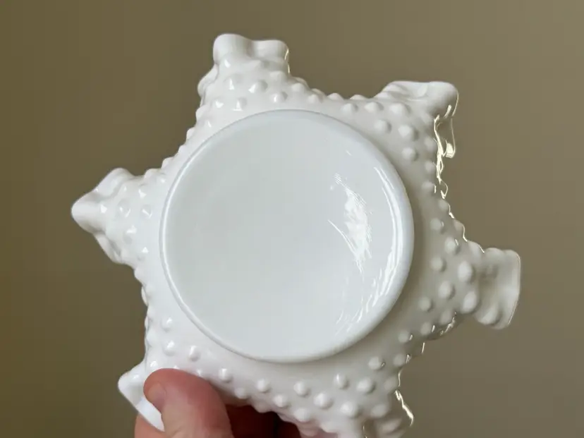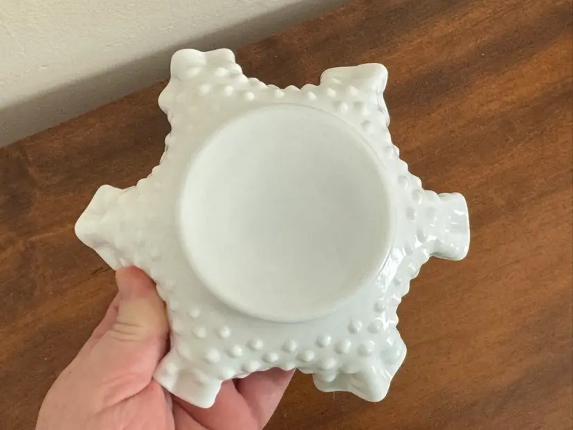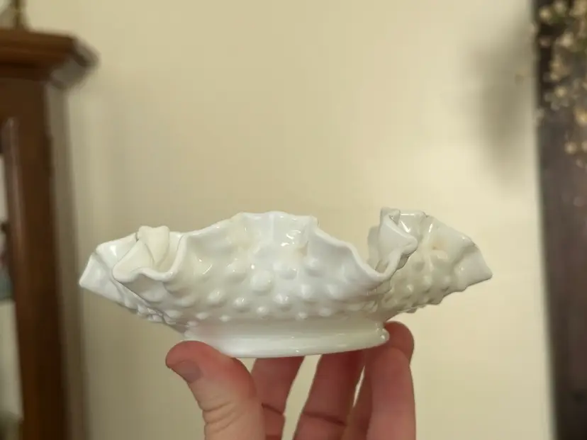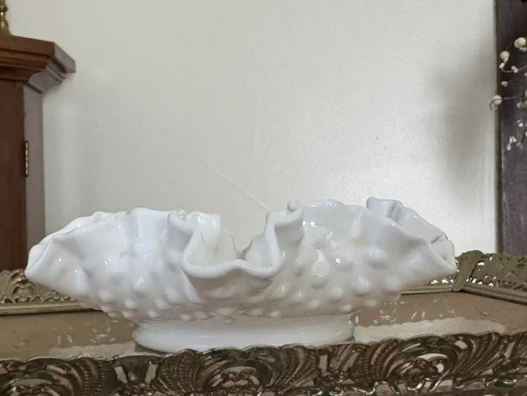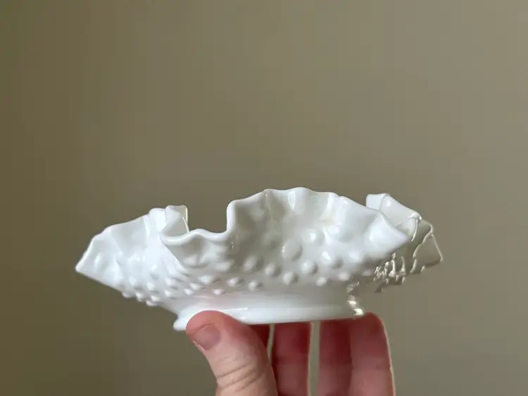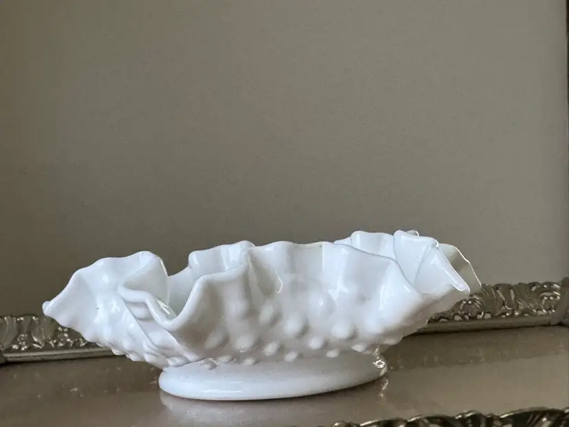 Vintage Fenton hobnail milk glass Bon Bon dish with ruffled edges