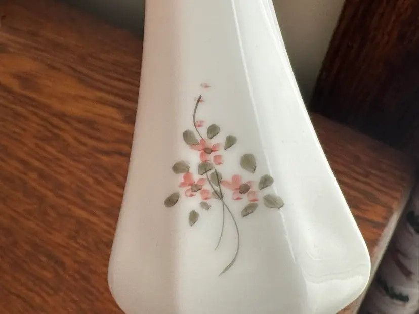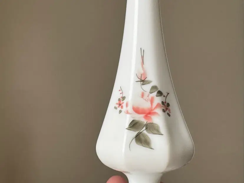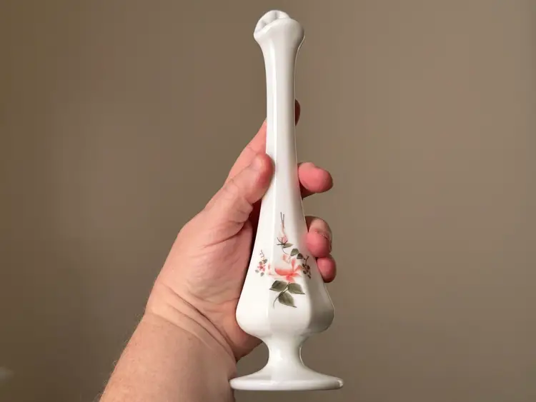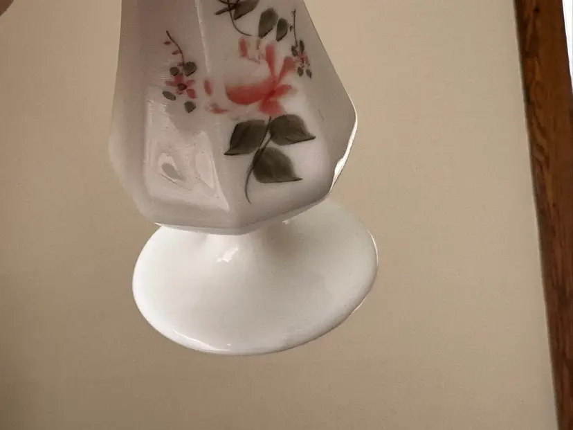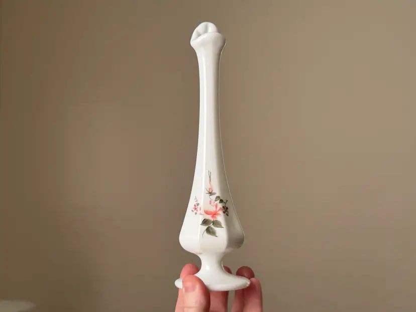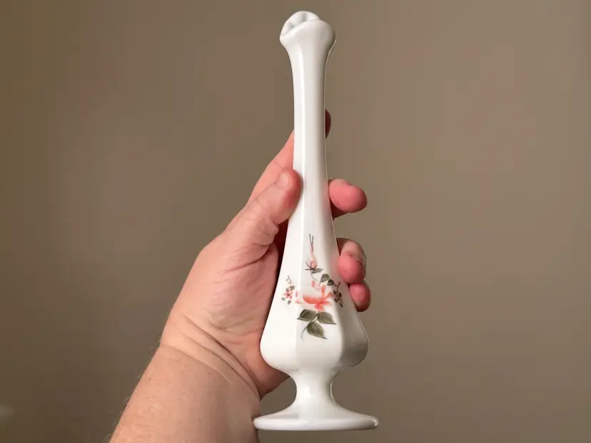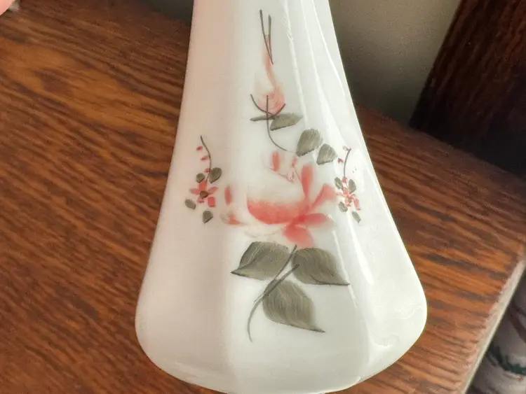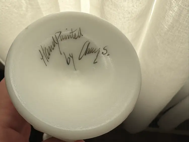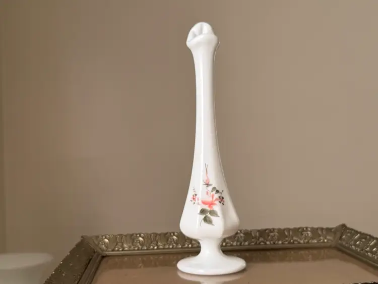 Vintage hand painted and signed Fenton milk glass swung vase