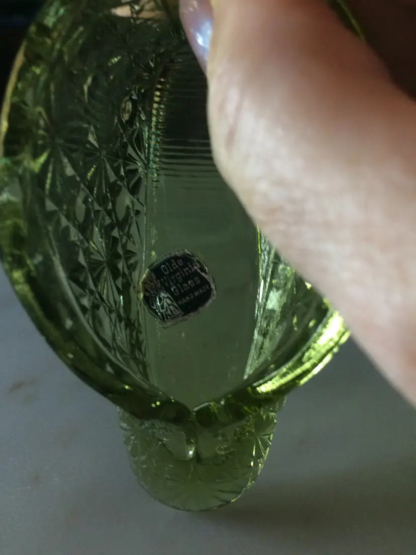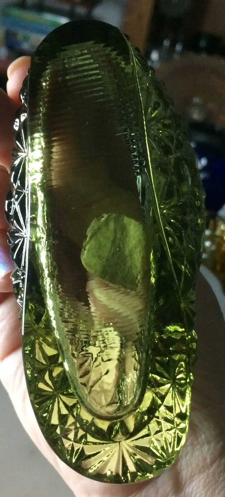 Vintage Fenton Old Virginia Glass Handmade Green Glass Baby Shoe 4 1/2" long x 2" tall . NEW to District? Enter code Michel42 into your wallet prior to your first purchase and save $5 off of $10 or more! Happy Hunting! Thank you for checking out my items! Give me a Follow and I'll Follow you back!