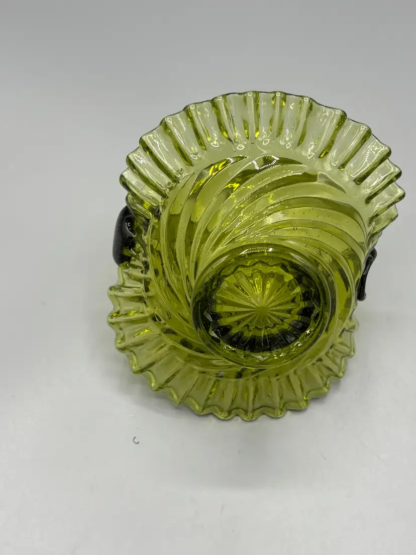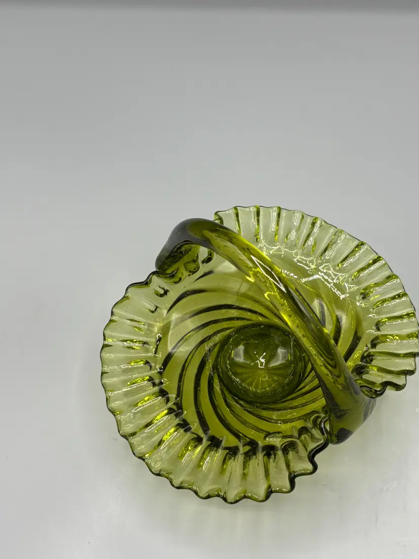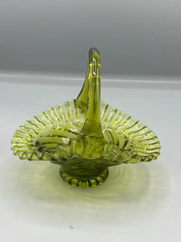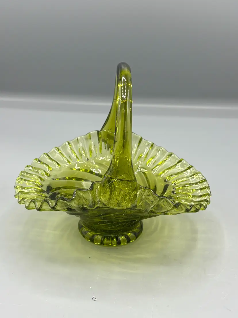 Vintage Fenton olive green basket with handle that would look stunning on any Easter display or collection. This has no cracks or chips.