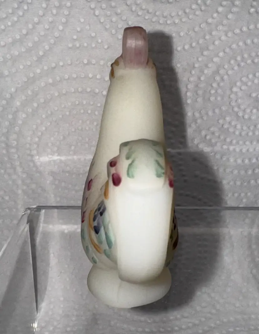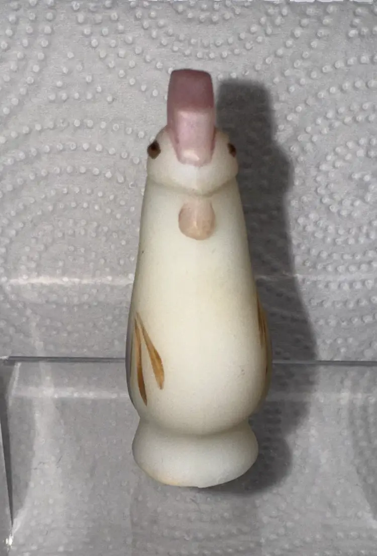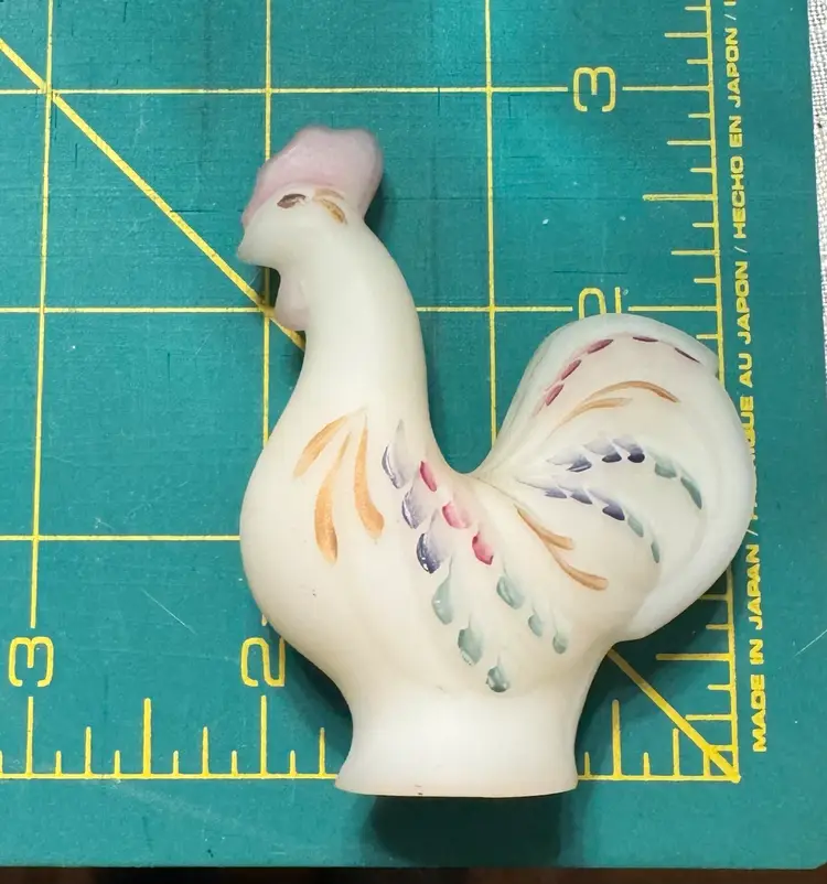 Multi colored trim is bright Does not glow No chips, beak intact Measurements in photo