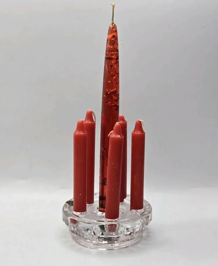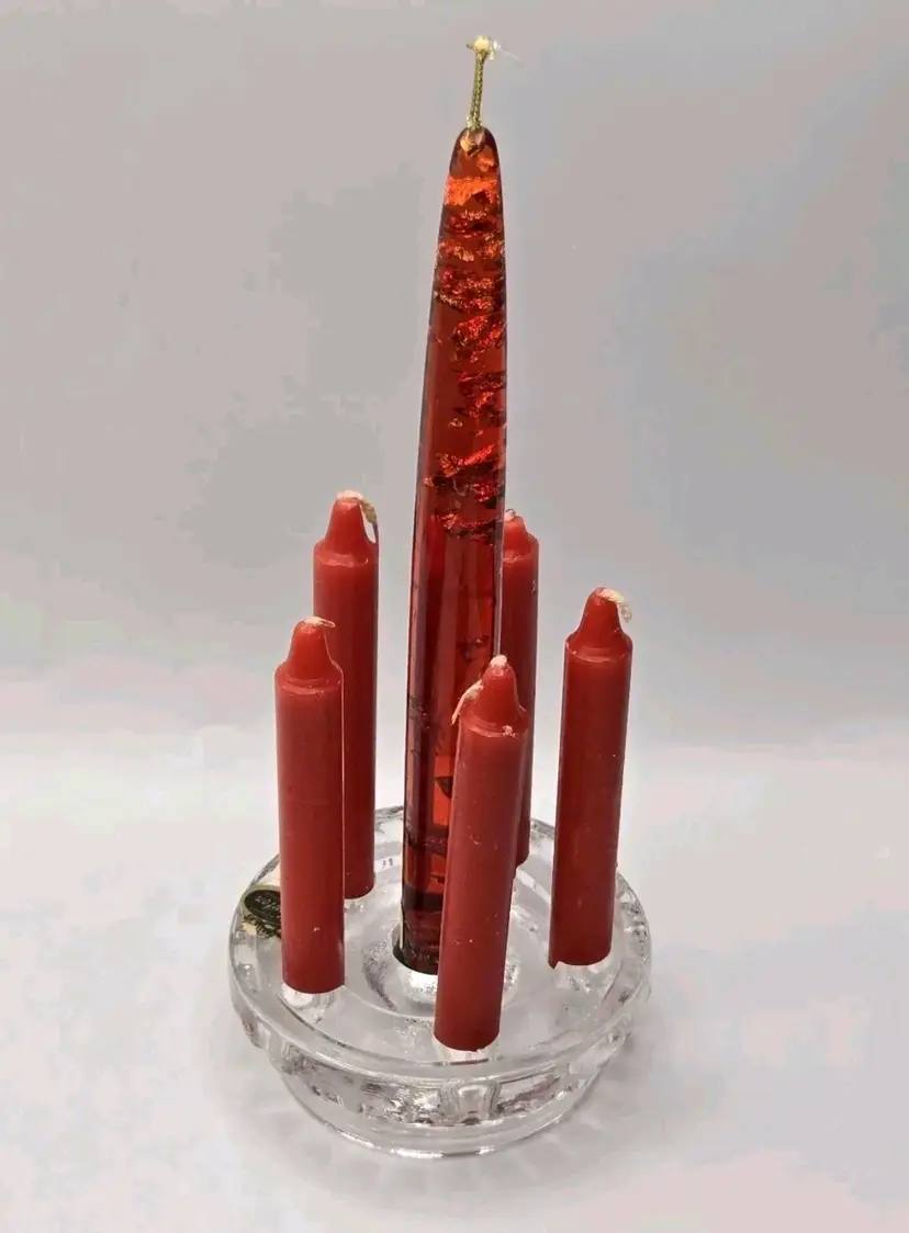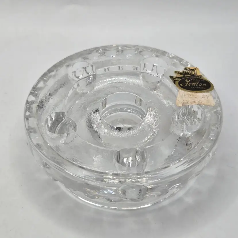 Vintage Fenton Round Clear Glass 6 Light Center Console Insert Candle Holder ๐ฅ Scarce find. EUC Approx 1.25"H X 3.5"W Very good condition. No chips, cracks, or breaks. Areas of minimal wear. See pictures.