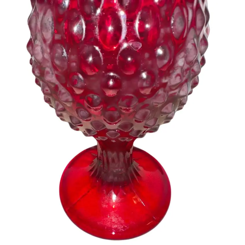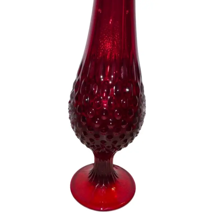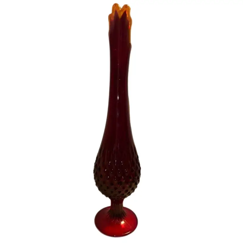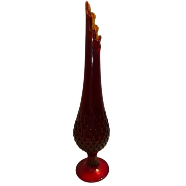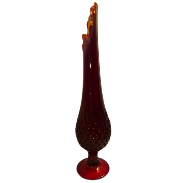 Absolutely a stunner No chips or cracks - great condition Vintage Fenton Ruby Red To Amberina Hobnail Swung Vase 15”