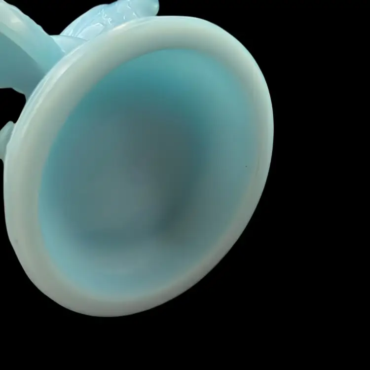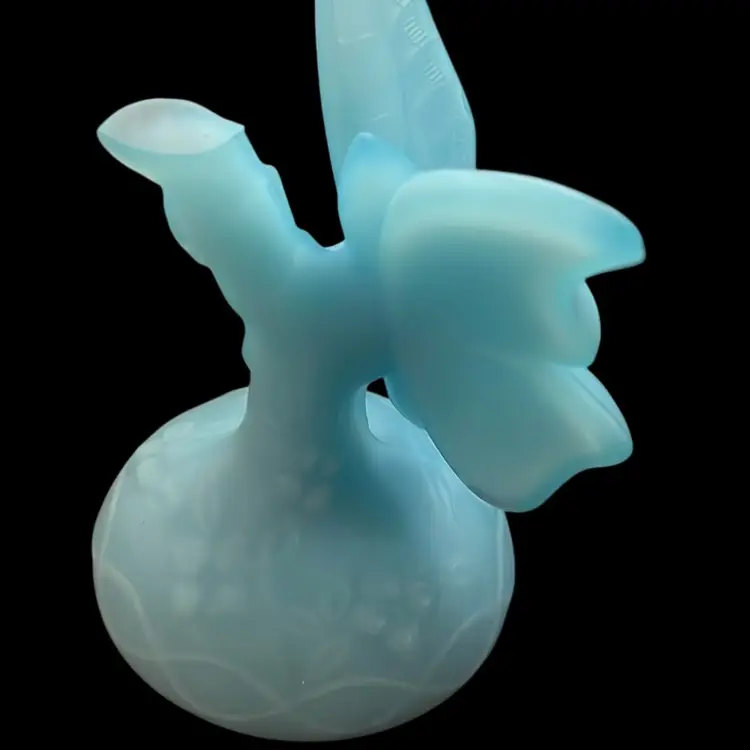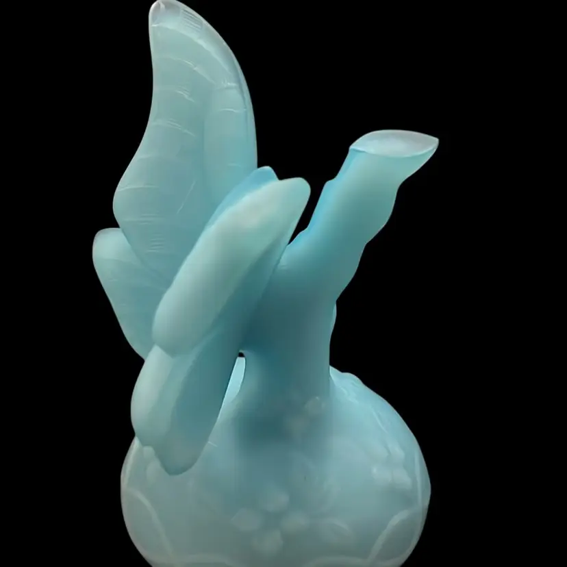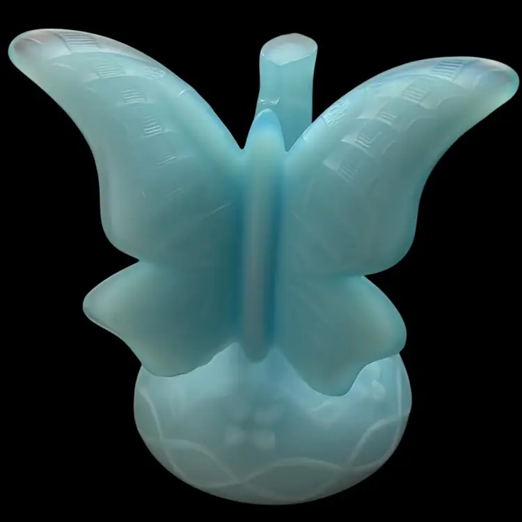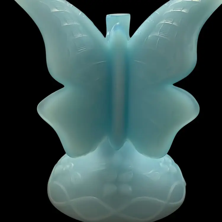 Vintage Fenton satin glass butterfly ring holder in light blue.4”