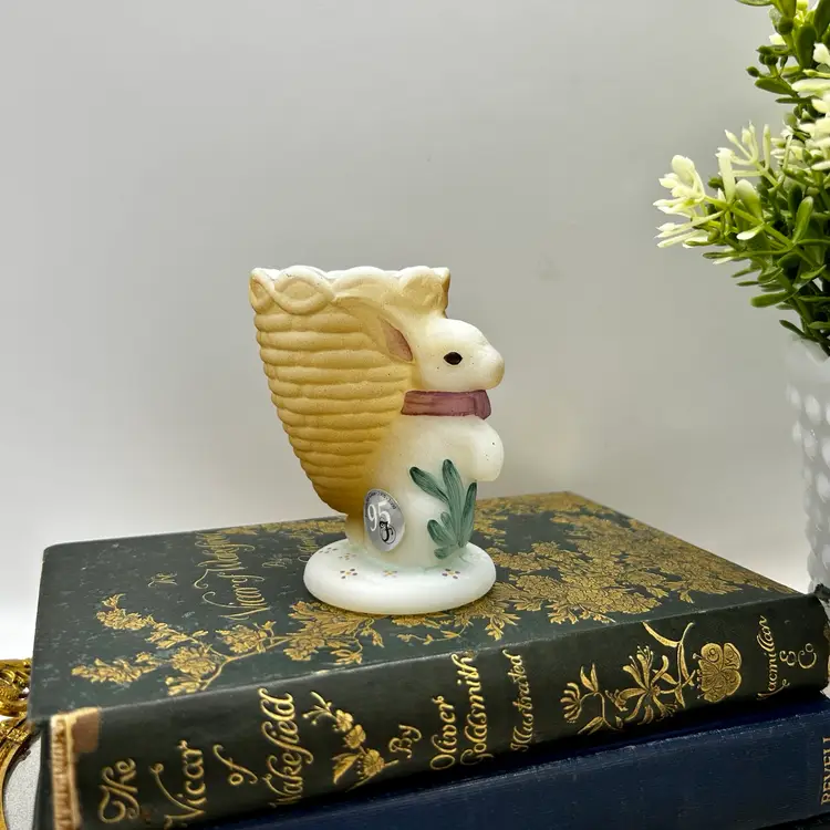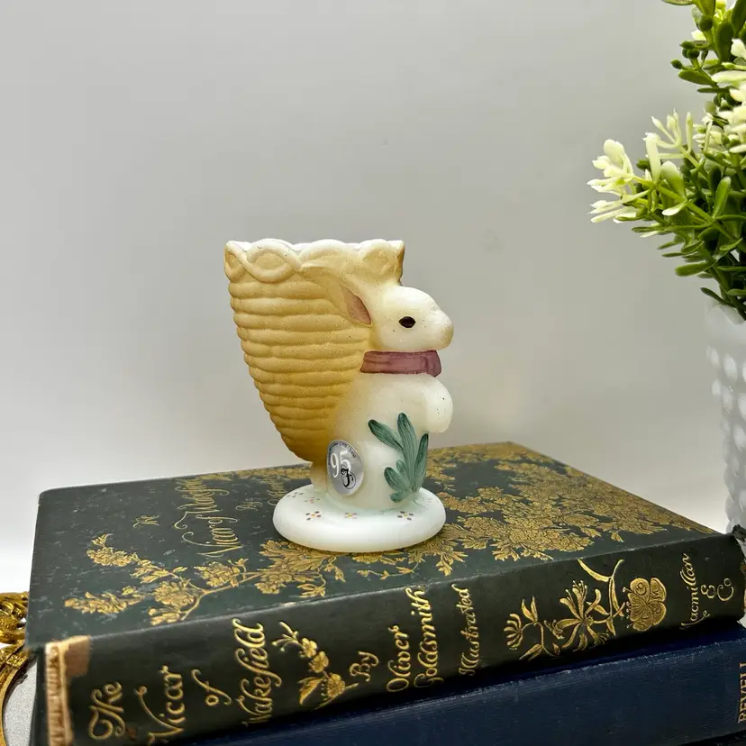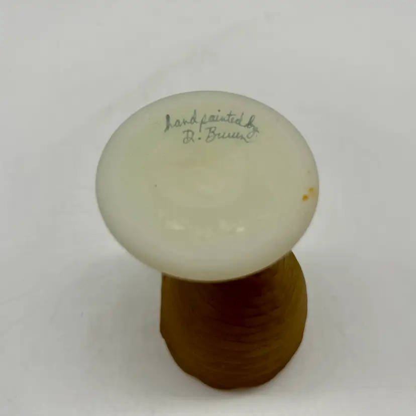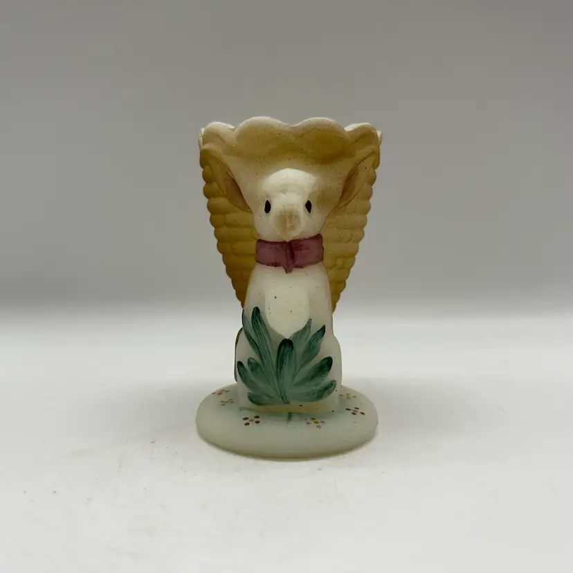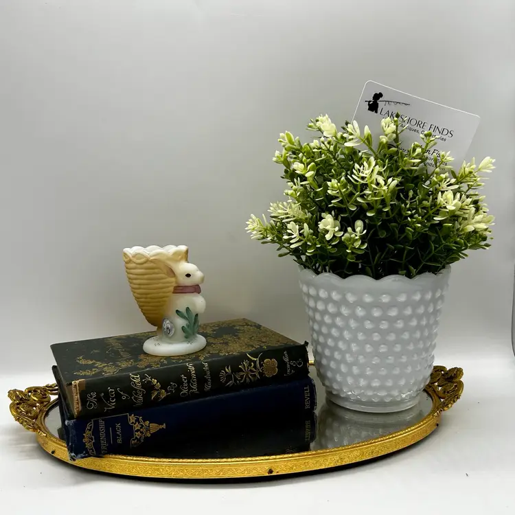 Adorable Fenton satin milk glass egg cup features an adorable bunny design that is hand-painted and signed by D. Bruun.