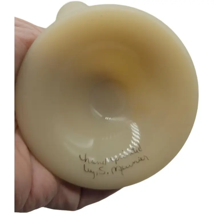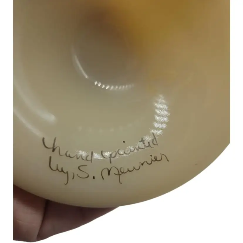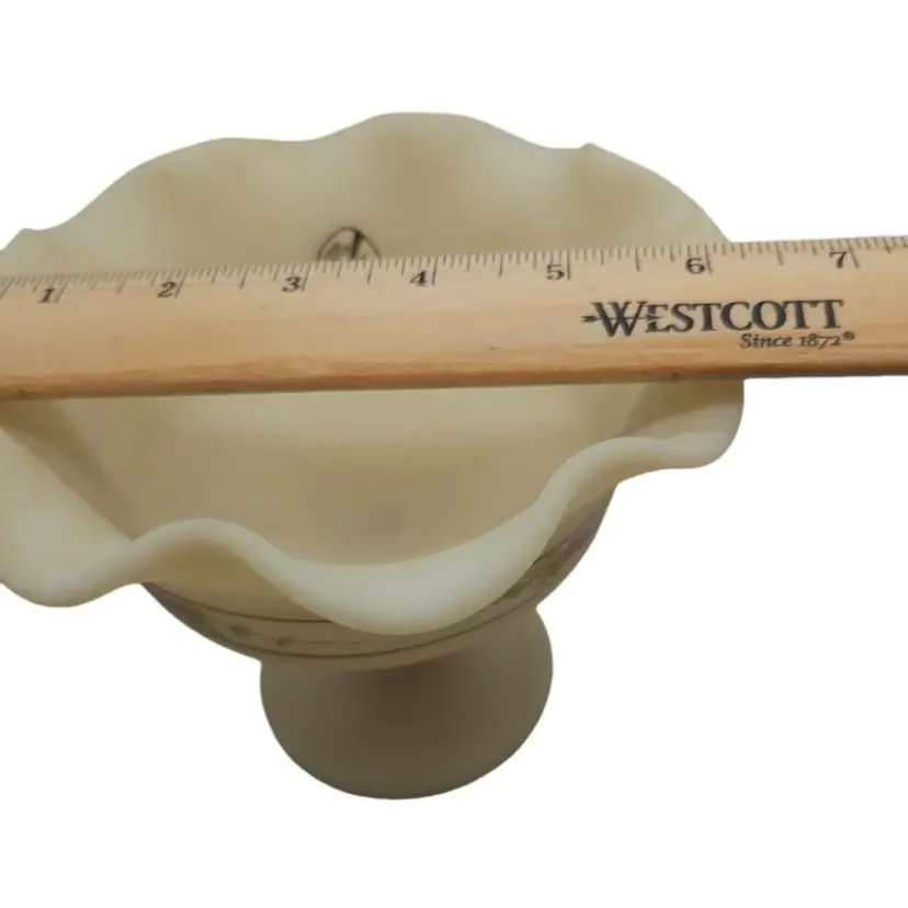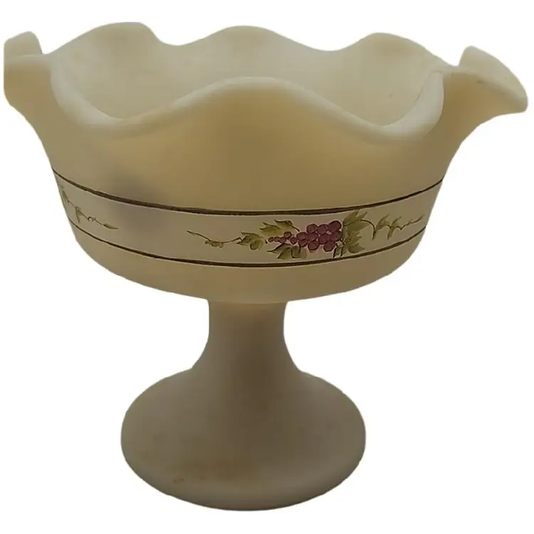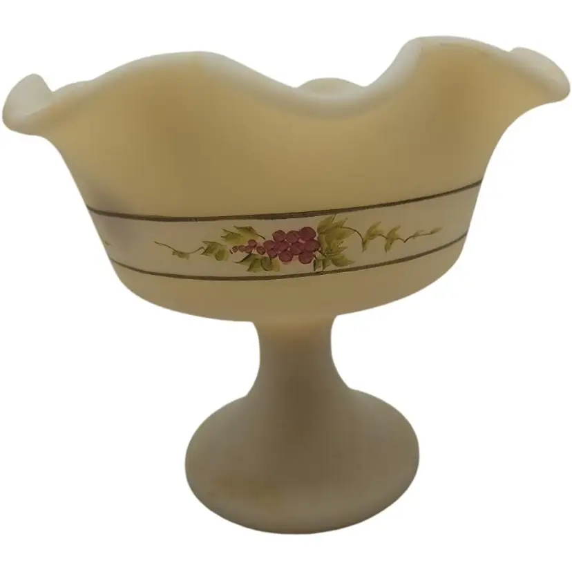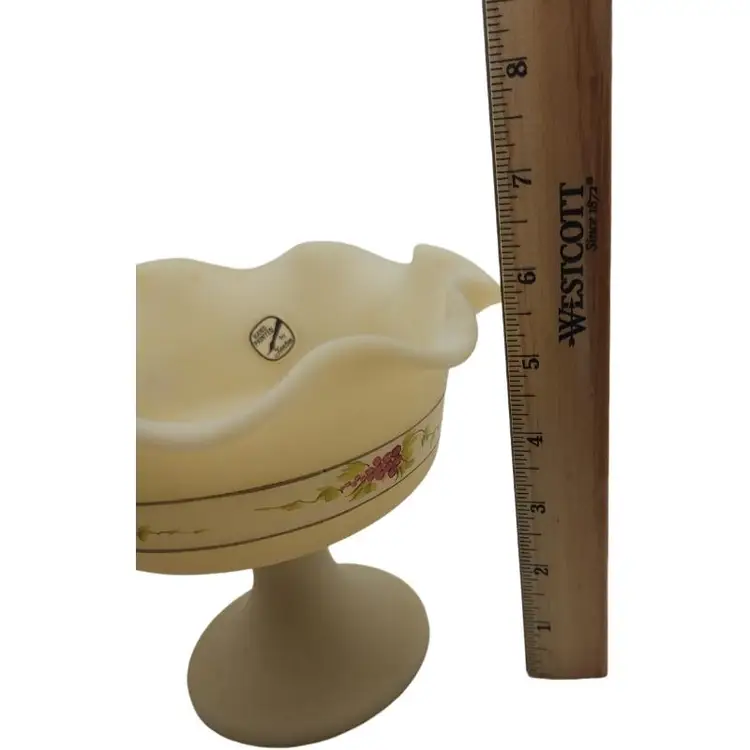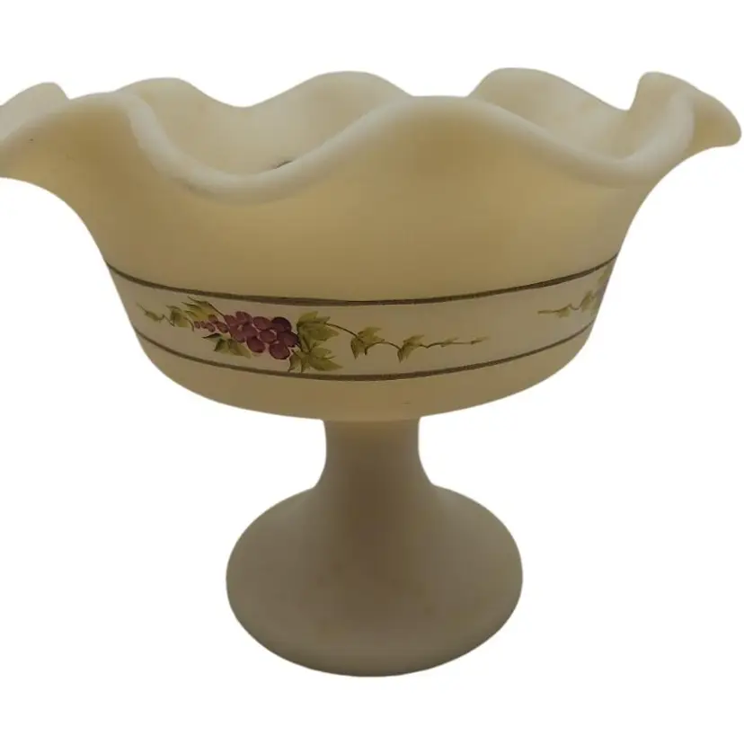 This charming vintage Fenton custard glass compote features a delicate floral design, perfect for adding a touch of elegance to your decor. Ideal for displaying candies or as a decorative piece on its own. A lovely addition for collectors of Fenton glassware!